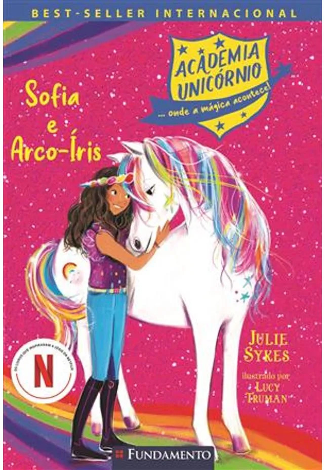 E se o seu melhor amigo fosse um unicórnio? Imagine uma escola onde você vai cavalgar com o seu unicórnio e aprender a conversar com ele. Juntos, vocês vão descobrir o que é magia e viver aventuras incríveis! Esse lugar é a Academia Unicórnio, e é lá que Sofia conhece Arco-Íris, seu lindo unicórnio com crina e rabo de arco-íris. Mas o primeiro teste deles não é sobre nenhuma matéria da escola! O Lago Brilhante, de onde vem a magia dos unicórnios, está com uma cor diferente e um cheiro estranho. Se o lago não voltar a ser como era, toda a magia pode acabar! Será que Sofia e Arco-Íris terão coragem de enfrentar o bosque horripilante e fazer o que for preciso para salvar a Academia Unicórnio?