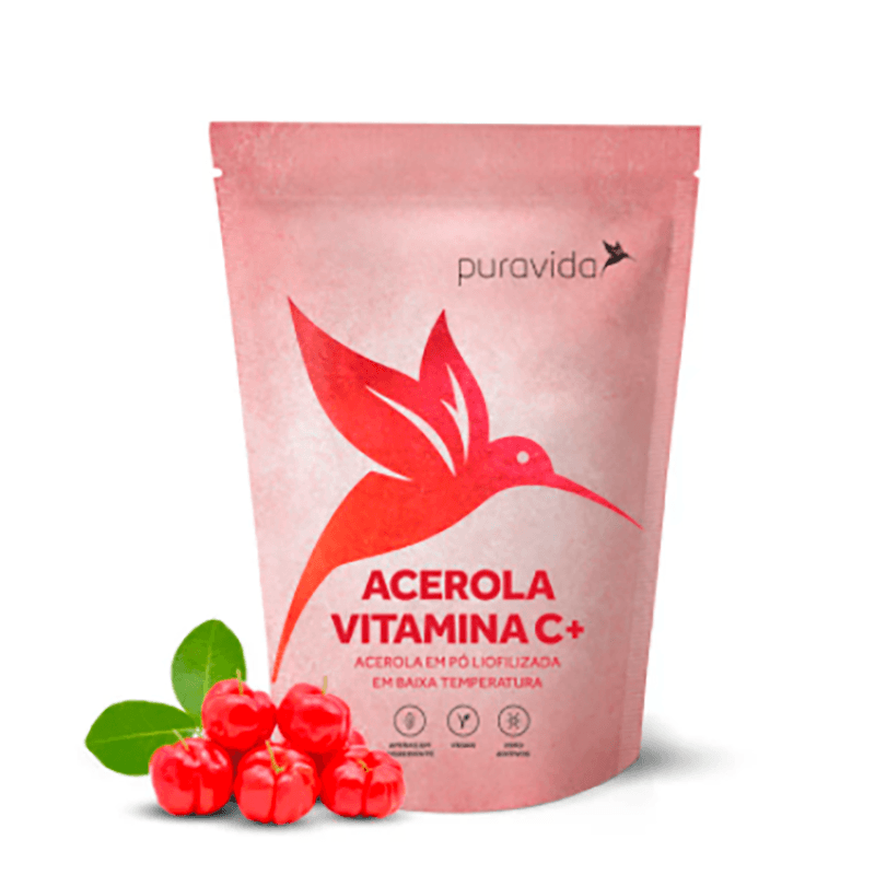 <br> A Acerola Premium C+ da Pura Vida é composto por apenas 1 ingrediente: a Acerola liofilizada, ou seja, em pó! Essa tecnologia conserva até 98% das características nutricionais do alimento. Pode ser utilizada em sucos, shakes, ou somente diluída na água. A Acerola Premium C garante uma dose caprichada de vitamina C para o seu dia, até 100 vezes mais em relação a outras frutas como laranja ou limão. <br> <br> Recomendação de consumo:<br> <br> O extrato pode ser utilizado puro em água ou adicionado em qualquer suco ou shake.<br> <br> Por que escolher esse produto?<br> Possui somente 1 ingrediente<br> Sem adição de açúcares<br> Livre de aditivos químicos<br> Livre de sódio<br> Zero gordura trans<br> Vegano<br> Versátil<br> Sobre a marca:<br> <br> A Pura Vida é uma empresa com o propósito de transformar a consciência alimentar, a marca acredita que quando você compra algo produzido com consciência, ciência e respeito pela Vida a sua energia financeira está voltada para que esta consciência e cuidado prosperem. Na Pura Vida os produtos são frescos e de produção recente, obtidos de cultivadores que não aceitam atalhos para economizar recursos.
