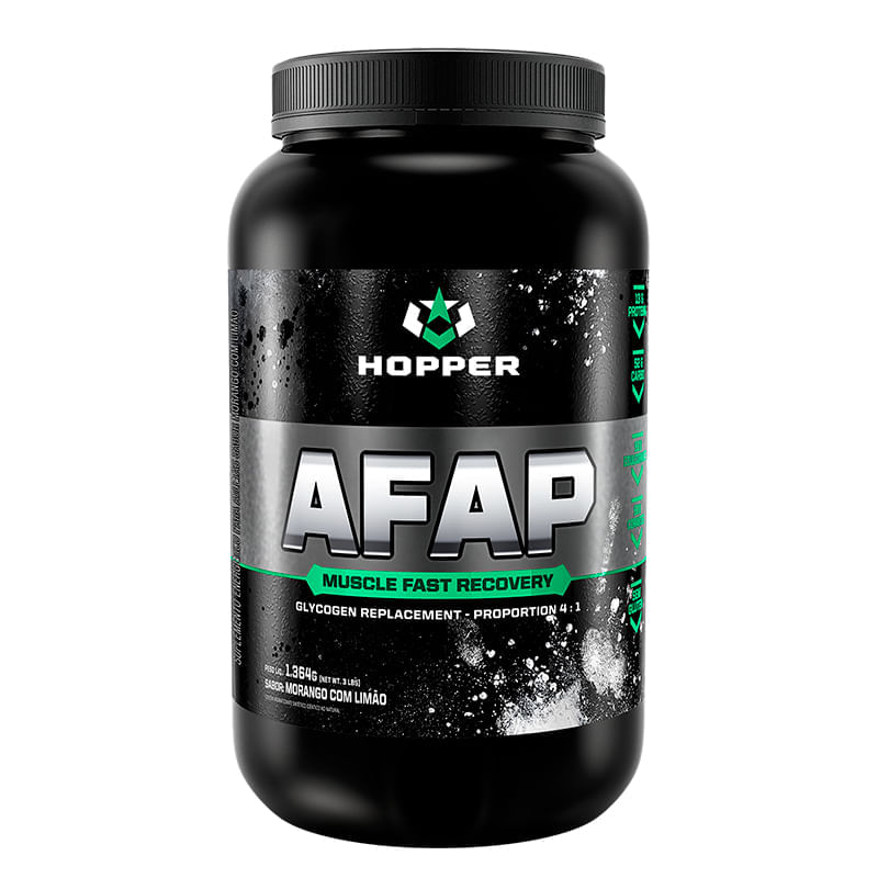 <p>O <strong>AFAP Recovery Morango Limão</strong>, da <strong>Hopper</strong>, é um suplemento formulado com carboidratos de rápida liberação de energia e proteínas de alto valor biológico, como o whey protein concentrado e isolado, na proporção 4:1 (4g de carboidratos para cada 1g de proteína).</p> <p>Cada porção fornece <strong>52g de carboidratos e 13g de proteínas</strong>, livre de corantes e adoçantes artificiais.</p> Sobre os ingredientes: <ul> <li> <strong>Dextrose, maltodextrina, frutose e ribose:</strong> os carboidratos auxiliam na recuperação da função muscular normal após exercícios extenuantes.</li> <li> <strong>Whey Protein: </strong>proteínas do soro do leite, fornece aminoácidos essenciais, ou seja, aqueles que o nosso corpo não produz e precisamos obter por meio da dieta.</li> </ul> Alérgicos: <p>Contém derivados de leite e soja*.</p> <p>*Ingrediente utilizado no processo de fabricação da proteína do soro de leite com função de instantaneização.</p> Recomendação de consumo: <p>Diluia 2 scoops (72 g) em 350 ml de água, de preferência gelada. Consuma imediatamente após os exercícios ou conforme orientação do médico ou nutricionista.</p> Por que escolher este produto? <ul> <li>Sem glúten</li> <li>Livre de corantes</li> <li>Com adição de vitaminas e minerais </li> <li>Com cranberry</li> </ul> Sobre a marca: <p></p> <p>A Hopper é uma marca que nasceu da vivência de atletas de alta performance e foi combinada ao respaldo científico e tecnológico da Integralmédica, referência em sports nutrition na América Latina. Diversos especialistas de nutrição e desempenho esportivo estão envolvidos no desenvolvimento dos produtos, que contam com alta tecnologia de produção, pureza e qualidade de padrão internacional.</p>