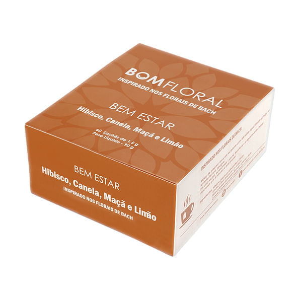 Informações sobre o produto:<br> O Blend Bem Estar, da BomFloral, inspirado nos Florais de Bach, contém 60 sachês, é totalmente natural, livre de glúten, conservantes e aromatizantes artificiais.<br> <br> O Chá misto de maçã, limão, hibisco e a canela garantem uma linda cor avermelhada e um sabor único.<br> <br> Recomendação de consumo:<br> Coloque 1 sachê de chá para cada xícara, pode ser preparado em água gelada ou água (não fervente) e deixe em infusão até o sabor e o aroma ficarem a seu gosto.<br> <br> Motivos para escolher esse produto?<br> Sem conservantes artificiais<br> Sem corantes<br> Com ingredientes naturais<br> Selo de qualidade Qualy Ervas<br> Sem aromas artificiais<br> Sem adição de açúcar<br> Sem adoçantes artificiais<br> Não contém glúten<br> Isento de lactose<br> Informações sobre a marca<br> A BomFloral quer unir a delicadeza das plantas, das flores e de suas propriedades, em produtos que transformam o bem estar e dia a dia das pessoas em momentos únicos. Nossa jornada começa com uma linha de chás inspirados nos Florais de Bach – a BomFloral. São sete chás que estão alinhados com os grupos emocionais definidos pelo Dr. Bach.<br> <br>