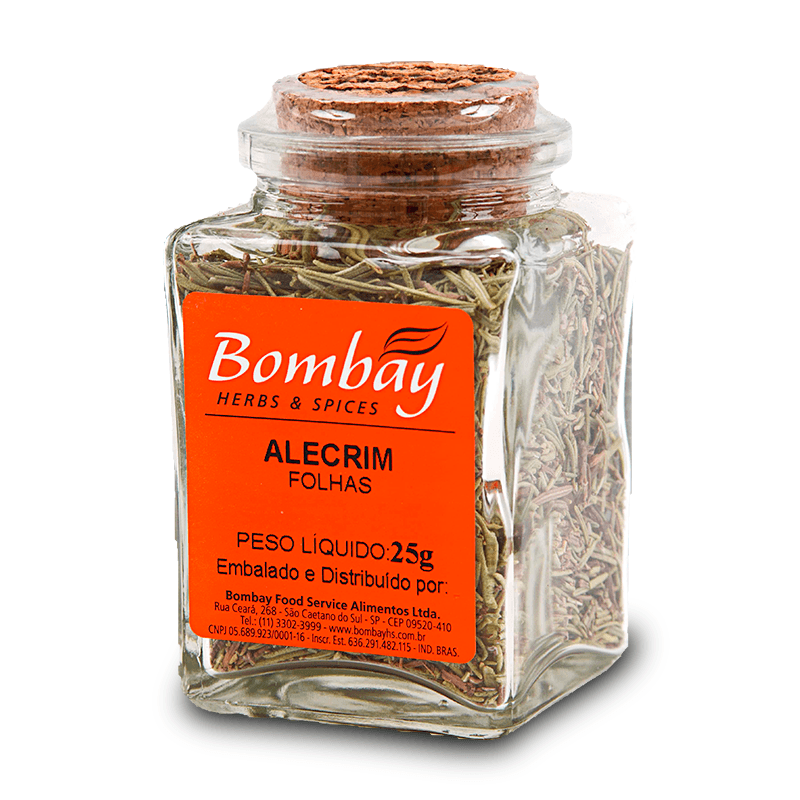<p>Informações técnicas:<br>O Alecrim, da Bombay, 25g, possui odor forte, fresco e herbáceo, com sabor picante, amadeirado e marcante! É uma ótima opção para diminuir a adição de sal nas refeições, deixando suas preparações muito mais saborosas.<br><br>É uma erva aromática oriunda da região do Mediterrâneo, muito utilizada na culinária europeia.<br><br>Recomendações para consumo:<br>Excelente ingrediente para carnes, sopas, batatas, molho de tomate, cogumelos. Pode ser usado como decoração em pratos prontos.<br><br>Salpique o alecrim sobre o carvão em brasa quando fizer churrasco, para deixar a carne com um aroma delicioso.<br><br>Motivos para escolher esse produto?<br>Sem glúten<br>Livre de OGM (organismos geneticamente modificados)<br>Sem carboidratos<br>Apenas 1 ingrediente<br>Sem adição de sal<br>Informações sobre a marca:<br>A Bombay Herbs & Spices é reconhecida como a empresa com maior variedade neste segmento. Foi idealizada para atender a demanda de ervas, especiarias e pimentas de alta qualidade de todos os clientes apaixonados pela gastronomia. Já conta com mais de 500 produtos, 100% puros e com uma infinidade de sabores.</p>