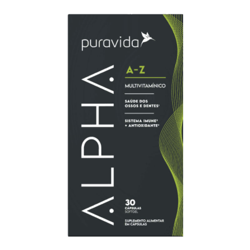 <p dir="ltr">O multivitam&iacute;nico <strong>Alpha A-Z da Puravida</strong> &eacute; elaborado com 22 vitaminas e minerais essenciais &agrave; sa&uacute;de, como ferro, vitamina D, C e as vitaminas do complexo B. As c&aacute;psulas s&atilde;o desenvolvidas no formato softgel.&nbsp;</p> <h2 dir="ltr">Sugest&atilde;o de consumo:</h2> <p dir="ltr">Consumir 1 c&aacute;psula ao dia, antes de uma refei&ccedil;&atilde;o, ou conforme recomenda&ccedil;&atilde;o do m&eacute;dico ou nutricionista.&nbsp;</p> <h2 dir="ltr">Motivos para escolher o produto:</h2> <ul> <li dir="ltr" aria-level="1"> <p dir="ltr" role="presentation">Fonte de vitaminas e minerais;&nbsp;</p> </li> <li dir="ltr" aria-level="1"> <p dir="ltr" role="presentation">Cont&eacute;m vitaminas do complexo B;</p> </li> <li dir="ltr" aria-level="1"> <p dir="ltr" role="presentation">Sem lactose;&nbsp;</p> </li> <li dir="ltr" aria-level="1"> <p dir="ltr" role="presentation">C&aacute;psulas softgel;</p> </li> <li dir="ltr" aria-level="1"> <p dir="ltr" role="presentation">Rende at&eacute; 30 doses.&nbsp;</p> </li> </ul> <h2 dir="ltr">A Marca</h2> <p dir="ltr"><strong>Pura Vida</strong> &eacute; uma empresa que nasceu com o prop&oacute;sito de facilitar a pr&aacute;tica de um estilo de vida org&acirc;nico. Acreditam que a qualidade daquilo que escolhemos comer, pode afetar o funcionamento do nosso corpo, funcionamento dos &oacute;rg&atilde;os, humor, foco e mente. Atrav&eacute;s de suas vitaminas, suplementos, cosm&eacute;ticos, granolas, col&aacute;genos e outros produtos elaborados com ingredientes de alt&iacute;ssima qualidade podem contribuir com a sinergia do corpo.</p>