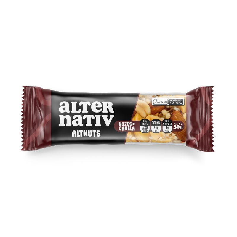 <p dir="ltr">A<strong> Barra de Nuts Nozes e Canela Alternativ</strong> é elaborada com um mix delicioso de nuts como o amendoim, nozes e castanha-de-caju, além de uva-passa clara e as fibras solúveis goma acácia, polidextrose, com um toque de canela resultando em uma barra incrível. Não possui glúten e lactose. </p> <h2 dir="ltr">Motivos para escolher o produto:</h2> <ul> <li dir="ltr"> <p dir="ltr">Produzido com nuts; </p> </li> <li dir="ltr"> <p dir="ltr">Contém 3,9g de proteínas; </p> </li> <li dir="ltr"> <p dir="ltr">Fonte de fibras; </p> </li> <li dir="ltr"> <p dir="ltr">Sem glúten e lactose;</p> </li> <li dir="ltr"> <p dir="ltr">Sem aromas e conservantes artificiais; </p> </li> <li dir="ltr"> <p dir="ltr">Adoçado com stévia, adoçante natural. </p> </li> </ul> <h2 dir="ltr">A Marca</h2> <p dir="ltr">Alternativ é uma empresa apaixonada por alimentos saudáveis e comprometida com a construção de um mundo mais sustentável. Acreditam que pequenas escolhas podem fazer uma grande diferença, e é por isso que se dedicam a criar alternativas deliciosas e nutritivas para os seus snacks favoritos, permitindo que você desfrute de uma alimentação saudável sem abrir mão do prazer.</p>