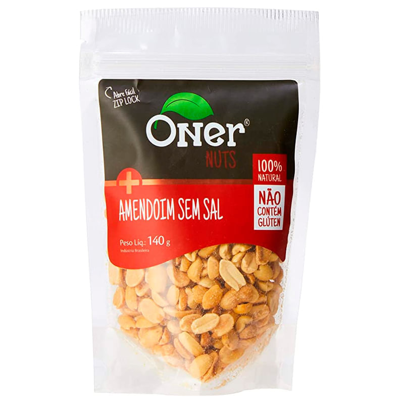 <p>Amendoim sem sal, 140g, Oner é um snack 100% natural, composto apenas por amendoim. Ideal para ser consumido como uma opção de lanche saudável. Não contém glúten, lactose ou adição de aditivos alimentares, como corantes e conservantes artificiais.<br><br>Informações sobre alergênicos:<br>Pode conter traços de amendoim e castanhas.<br><br>Recomendação de consumo:<br>Pode ser consumido a qualquer hora do dia, no intervalo das refeições, ou adicionado em salada de frutas, açaí, entre outros.<br><br>Por que escolher esse produto?<br>100% natural<br>Sem adição de açúcar<br>Sem lactose<br>Livre de gorduras trans<br>Sem glúten</p>