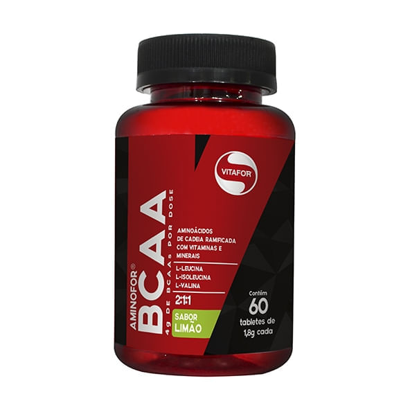 Informações técnicas do produto: <br>_x000D_ O Aminofor BCAA sabor limão 60 Tabletes, da Vitafor, é composto por BCAA, produzidos com tecnologia japonesa que garantem os melhores aminoácidos do mundo. Além disso, também contém vitamina C, B6, colina, zinco e magnésio quelatos e selênio orgânico (Exselen®), que promovem efeitos sinérgicos e potencializam os benefícios nutricionais do BCAA.<br>_x000D_ <br>_x000D_ Sobre os ingredientes:<br>_x000D_ BCAA (Branched Chain Amino Acids): Aminoácidos de Cadeia Ramificada. São eles: leucina, isoleucina e valina, que são obtidos exclusivamente da dieta ou de suplementação, estão relacionados com a diminuição da fadiga nos treinos;<br>_x000D_ Colágeno Hidrolisado: Passa por um processo em que é quebrado em partículas menores, para ser mais facilmente absorvido e melhor aproveitado pelo organismo, favorecendo o aspecto e fortalecimento da pele.<br>_x000D_ Recomendação de consumo:<br>_x000D_ Tablete -Seguir a recomendação da tabela abaixo, ou seguir a orientação de um nutricionista ou médico. Tabela de referência: Tabela de Recomendação de Uso² Peso do Indivíduo em kg Quantidade de Porção indicada (s) por dia- De 40 à 57kg - 1 Tablete De 58 à 93kg - 2 Tabletes De 94 à 130kg - 3 Tabletes De 131 à 167kg - 4 Tabletes ² Tabela de referência com base na recomendação diária de aminoácidos de cadeia ramificada estabelecida pela Portaria n º 222, de 24 de março de 1998, da ANVISA. <br>_x000D_ <br>_x000D_ Por que escolher esse produto?<br>_x000D_ Não contém glúten<br>_x000D_ 4g de BCAA por porção;<br>_x000D_ Rápida absorção na forma de pó para preparo de bebida<br>_x000D_ Zero adição de açúcar<br>_x000D_ Sobre a marca: <br>_x000D_ A Vitafor, é uma empresa que promove o desenvolvimento de comunidades sadias e o bem-estar do ser humano. Dispõe de um moderno laboratório de controle de qualidade e desenvolvimento de novos produtos. Contando com todos os equipamentos necessários para a realização dos testes exigidos pelos mais rigorosos controles de qualidade mundiais, tem a capacidade técnica e material de desenvolver novos produtos baseados nos conhecimentos médicos, fisiológicos, nutricionais e acadêmicos mais recentes.