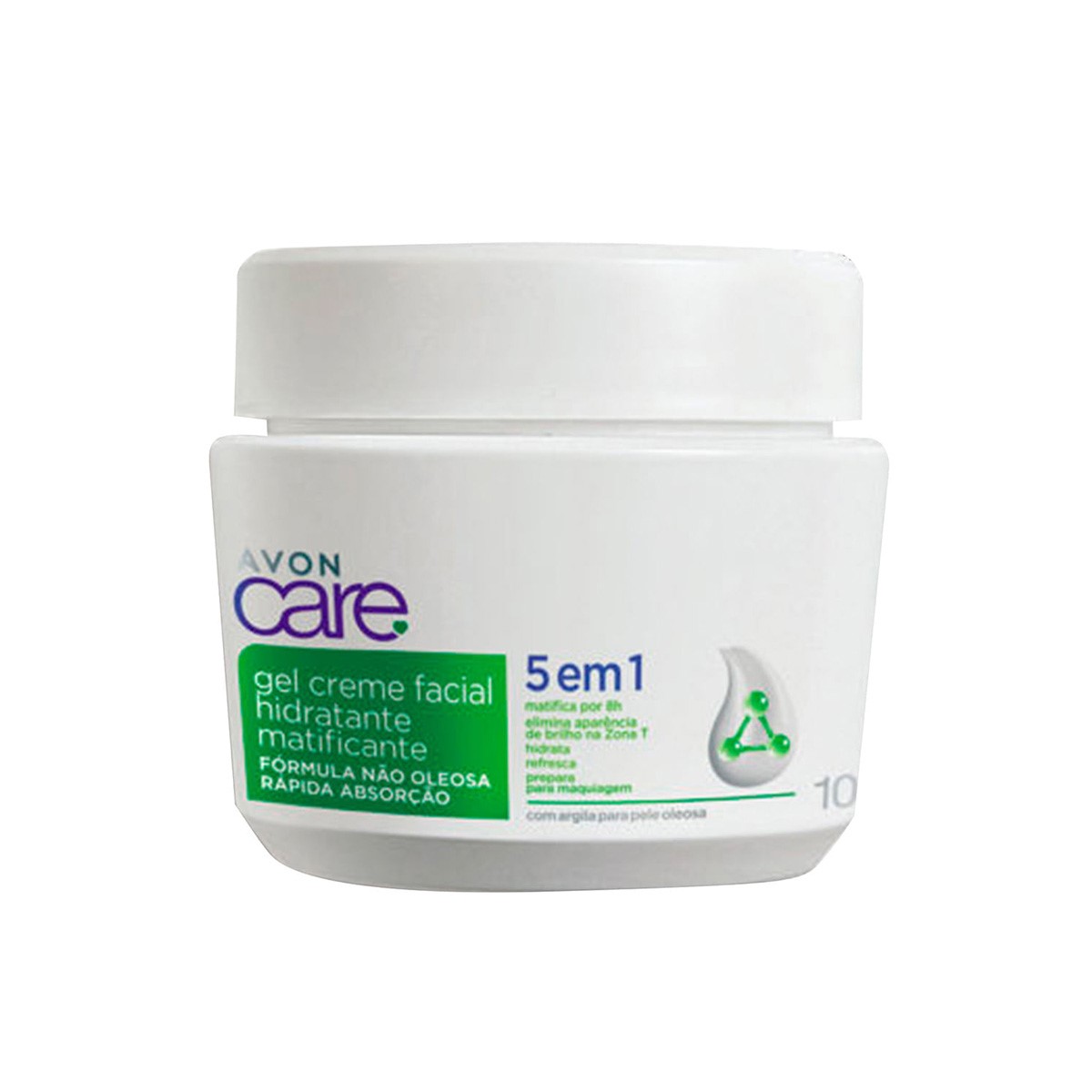 Creme Facial Hidratante Matificante Gel Avon Care.<br /> <br /> Ação 5 em 1:<br /> <br /> Matifica por 8 horas;<br /> <br /> Elimina aparência de brilho na zona T;<br /> <br /> Hidrata;<br /> <br /> Refresca;<br /> <br /> Prepara para a maquiagem;<br /> <br /> Fórmula não oleosa;<br /> <br /> Rápida absorção;<br /> <br /> Com argila para pele oleosa.<br /> <br /> *NOVA FÓRMULA*