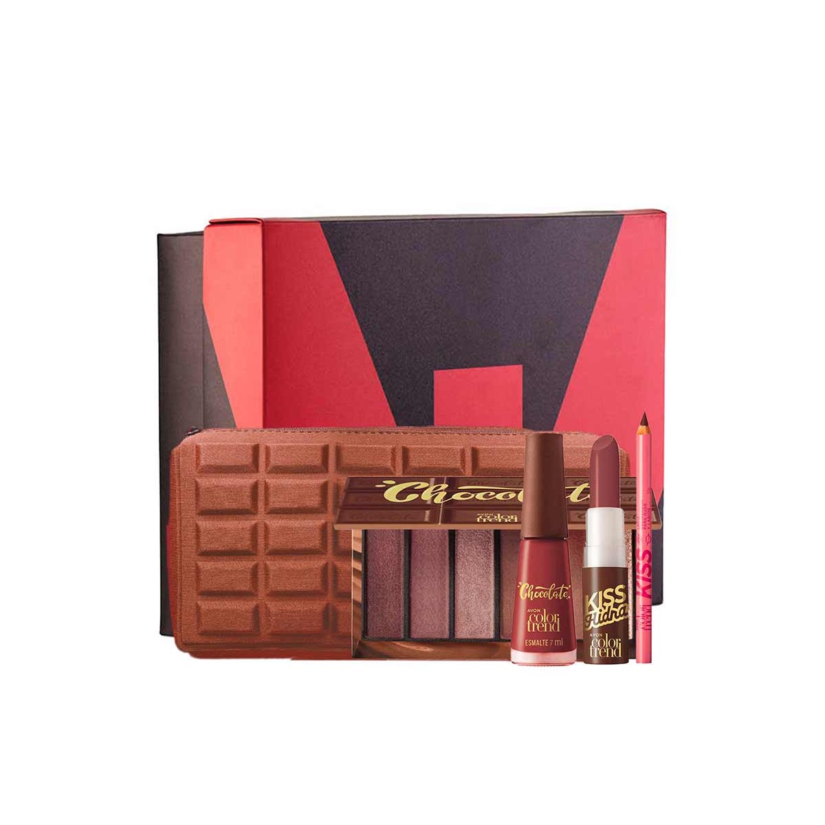 Avon Presente Color Trend Chocolate Especial - 5 Itens!<br /> <br /> o kit contém:<br /> <br /> 1 Paleta Avon de Sombras Para Olhos Com 6 Tons de 0,7g cada;<br /> <br /> 1 - Necessárie Avon Chocolate - Comprimento: 17cm | Altura: 10cm | Profundidade: 4cm;<br /> <br /> 1 Esmalte Avon Chocolate Com Queratina E Pantenol 7ml | Cor: Chocolate Belga;<br /> <br /> 1 Batom Avon Chocolate Kiss Hidra 3,6g | Cor: Chocolate Belga;<br /> <br /> 1 Lápis Delineador Avon Para Olhos E Boca | Cor: Belga/Brownie.<br /> <br /> Ótimo custo-benefício. Presenteie Com AVON.<br /> <br />