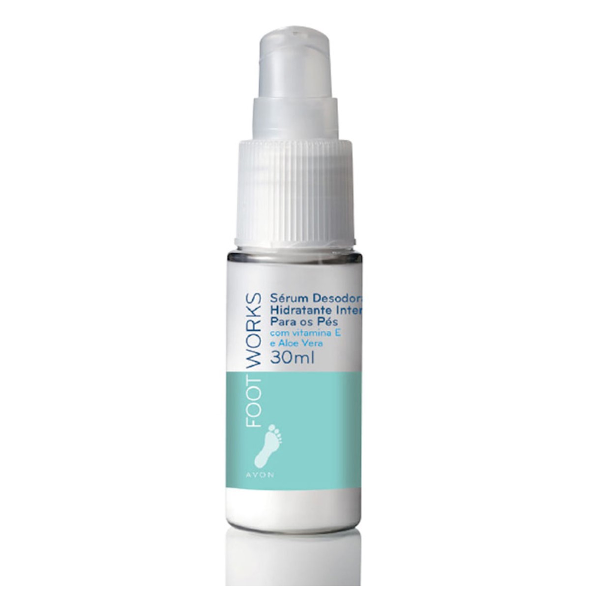 FOOTWORKS DES REPARADOR VITA E.<br /> <br /> Foot Works é uma marca que acredita que os seus pés merecem um cuidado especial, por isso, pensou no Sérum Desodorante Hidratante Intensivo Foot Works 30ml com Vitamina E e Aloe Vera para os Pés.<br /> <br /> O produto contém glicerina e óleo de menta, que ajuda a manter a pele dos pés macia e hidratada.<br /> <br /> E ainda, melhora a aparência geral dos pés desde a primeira aplicação, revelando uma pele mais bonita.<br /> <br /> O Creme contém propriedade desodorante, fórmula não oleosa e de rápida absorção.<br /> <br /> O produto é dermatologicamente testado.<br /> <br /> Adquira o Sérum Desodorante Hidratante Intensivo Foot Works e garanta pés hidratados.<br /> <br /> Diferenciais:<br /> <br /> Pele suave e macia desde a primeira aplicação;<br /> <br /> Pés restaurados e com sensação de hidratados em apenas uma aplicação;<br /> <br /> Fórmula não oleosa e de rápida absorção;<br /> <br /> Textura leve e de rápida absorção;<br /> <br /> Ideal para aplicar diariamente, pois não deixa o pé oleoso;<br /> <br /> Permite calçar os sapatos em seguida;<br /> <br /> Hidratação efetiva e agradável sensação refrescante;<br /> <br /> Com propriedade desodorante, que ajuda a mascarar odores desagradáveis.