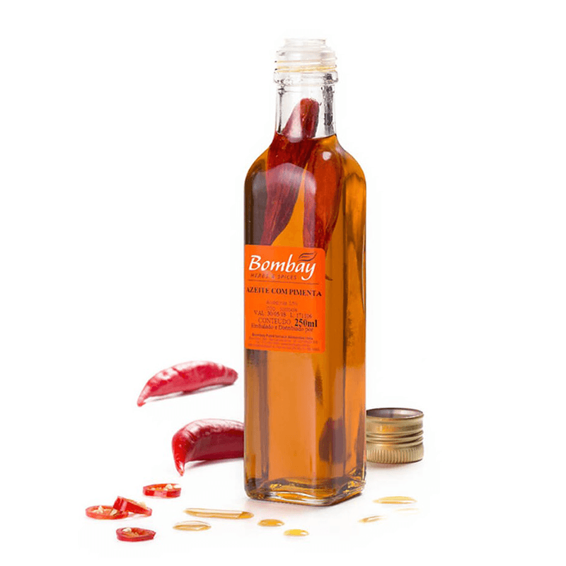 <p>Informações técnicas:<br>O Azeite Virgem com pimenta, da Bombay, 250ml, é produzido a partir da mistura do extrato de pimenta em azeite virgem, com pimentas liofilizadas. O resultado é um delicioso sabor picante!<br><br>Ideal para temperar saladas e massas e, dar um toque final em carnes e legumes cozidos.<br><br>Motivos para escolher esse produto?<br>Sem glúten<br>Livre de OGM (organismos geneticamente modificados)<br>Sem corantes e aromatizantes<br>Informações sobre a marca:<br>A Bombay Herbs & Spices é reconhecida como a empresa com maior variedade neste segmento. Foi idealizada para atender a demanda de ervas, especiarias e pimentas de alta qualidade de todos os clientes apaixonados pela gastronomia. Já conta com mais de 500 produtos, 100% puros e com uma infinidade de sabores.</p>