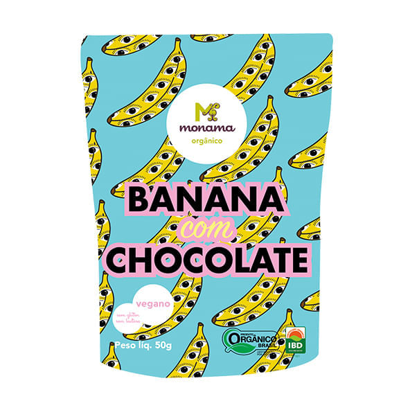 A Banana com Chocolate, da Monama, é um produto com pedacinhos de banana desidratada cobertos com chocolate 70%, elaborado com ingredientes orgânicos. Uma opção de snack para quem procura uma alternativa aos doces. Pode ser consumido como sobremesa e em lanches intermediários como uma opção mais saudável.