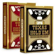 Contém 1 baralho com 55 Cartas (52 Cartas + 2 Curingas + Carta Guia De Poker)<br /> <br /> O Baralho Texas Hold’Em Foi Especialmente Desenvolvido Para Jogar Poker, Fabricado Em Pvc De Alta Qualidade E Internacionalmente Reconhecido Por Sua Fórmula Exclusiva Que Garante Um Agradável Manuseio. Não Transparente, Impermeável E De Grande Durabilidade.<br /> <br /> Especificações:<br /> <br /> Tipo Da Carta: 100% Plástico<br /> <br /> Tamanho Da Carta: 63x88 Mm<br /> <br /> Tamanho Naipe: Grande.<br /> <br /> Tipo De Embalagem: Cartucho Unitário Preto ou Vermelho o verso da carta<br /> <br /> ATENÇÃO, PRODUTOS DE PAPELARIA PODEM CONTER VARIAÇÕES DE CORES, OU TIPO NÃO DISPONÍVEIS.