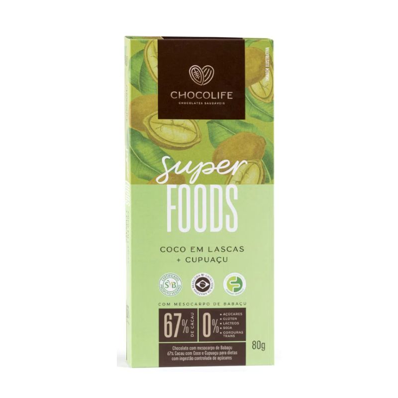 <h2 style="text-align: justify;"><strong>Superfoods Cupuaçu C/ Coco 80G</strong> <strong>Chocolife</strong></h2> <h2 style="text-align: justify;">O tablete de <strong>Chocolate 67% cacau </strong>sabor <strong>Cupuaçu e Coco</strong> da linha <strong>Superfoods Chocolife</strong> é uma deliciosa e nutritiva combinação do cacau intenso, com a maciez e sabor do coco, associados ao toque do cupuaçu, com presença harmoniosa e rica em nutrientes. Ele não tem adição de açúcar, não contém glúten e nem lactose e possui selo de certificação FODMAP Friendly. Você vai se surpreender com essa explosão de sabores.</h2> <h2 style="text-align: justify;"><strong>Sobre os ingredientes:</strong></h2> <h2 style="text-align: justify;">Adoçado com eritritol e stévia</h2> <h2 style="text-align: justify;"> </h2> <h2 style="text-align: justify;"><strong>Sugestão de consumo:</strong></h2> <h2 style="text-align: justify;">Uma alternativa saudável para sua sobremesa ou para aqueles momentos em que bate uma vontade de comer doce.</h2> <h2 style="text-align: justify;"><strong>Motivos para escolher o produto:</strong></h2> <ul style="text-align: justify;"> <li> <h2>Vegano e funcional;</h2> </li> <li> <h2>Certificação FODMAP Friendly;</h2> </li> <li> <h2>Fonte de fibras;</h2> </li> <li> <h2>Zero adição de açúcar;</h2> </li> <li> <h2>Sem glúten;</h2> </li> <li> <h2>Sem leite;</h2> </li> </ul> <h2 style="text-align: justify;"> </h2> <h2 style="text-align: justify;"><strong>A Marca</strong></h2> <h2 style="text-align: justify;">A Chocolife desenvolve produtos para atender pessoas que prezam por uma alimentação saudável, livre de açúcares e ingredientes alergênicos. Sendo a empresa que trouxe ao mercado o primeiro chocolate funcional no Brasil e criou o primeiro chocolate branco zero açúcar e vegano. O diferencial da marca está na produção sustentável do chocolate saudável, desde a colheita do cacau, de origem amazônica, até o processo final de fabricação, com ingredientes criteriosamente selecionados, proporcionando uma combinação perfeita entre a qualidade nutricional e o sabor, agradando a todos os paladares.</h2> <h2 style="text-align: justify;"> </h2>