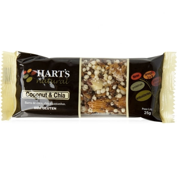 Barra Super Mix, Cereais, Sementes, Castanhas e Passas, da Hart's Natural possui uma combinação de flocos de arroz, quinoa, semente de linhaça, gergelim, castanha do Pará, amêndoas, uva passa e mel. Rica em fibras, além de não conter glúten, lactose, corantes e aromas artificiais.