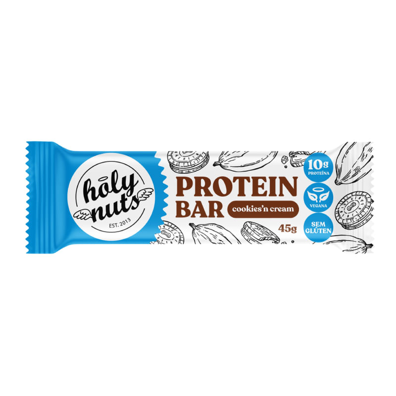 <p>A <strong>Barra de proteína vegana sabor cookies’n’cream Holy Nuts</strong>,<strong> </strong>é feita com proteína isolada da ervilha, proteína concentrada da alfarroba e sem adição de açúcares. Ela fornece 10g de proteína, possui uma textura macia e um sabor especial de cookies e cream. Uma boa alternativa também para veganos e pessoas com intolerância à lactose. </p> <h2><strong>Sobre os ingredientes:</strong></h2> <p><strong>Proteína vegetal:</strong> proteína é um nutriente essencial para a saúde dos músculos e tecidos. Ajuda na manutenção, recuperação e ganho de massa muscular. </p> <h2><strong>Sugestão de consumo:</strong></h2> <p>Um snack proteico prático para consumo pré ou pós treino, em um lanche intermediário nos dias mais corridos ou quando surgir aquela vontade de comer um doce. No tamanho ideal para carregar na bolsa para o trabalho, escola ou academia.</p> <h2><strong>Motivos para escolher o produto:</strong></h2> <ul> <li> <p>Elaborado com proteína vegana;</p> </li> <li> <p>Fornece 10g de proteína;</p> </li> <li> <p>Promove saciedade, atuando no controle do apetite;</p> </li> <li> <p>Pode ser consumido por intolerantes à lactose;</p> </li> <li> <p>Não contém açúcares adicionados e nem glúten.</p> </li> </ul> <h2><strong>A Marca</strong></h2> <p>A Holy Nuts é uma empresa especializada em produtos elaborados a partir de castanhas e oleaginosas, que se lançou no mercado com uma linha de cremes - ou butters - feitos com oleaginosas diversas, em versões integrais e outros diversos sabores os mais próximos do “feito em casa” possível. Passando a oferecer uma alternativa saudável e com ingredientes naturais para seus clientes.</p> <p> </p>