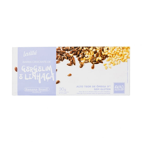 Informações técnicas do produto:<br> A Barra Levittá Gergelim e Linhaça, da Banana Brasil, é uma barrinha feita com sementes ideal para ser consumida nos lanches intermediários. É fonte de fibras e de gorduras do bem, possui baixo teor de carboidratos (low carb) e não contém glúten ou sódio.<br> <br> Recomendações de consumo:<br> A Barra Levittá Gergelim e Linhaça é gostosa e prática, sendo uma ótima opção para levar sempre com você e matar a fome no meio do dia!<br> <br> Por que escolher este produto:<br> Prático<br> Low carb<br> Não contém glúten<br> Zero sódio<br> Fonte de fibras<br> Sobre a marca:<br> A Banana Brasil iniciou suas atividades em 1985, com a desidratação da banana. Ao longo do tempo, foi ampliando seu portfólio de produtos, e hoje em dia procura desenvolver opções de snacks saudáveis e nutritivos, sem adição de açúcar e sem glúten ou sódio. Os produtos são feitos a partir de ingredientes naturais que incluem frutas, sementes e castanhas.