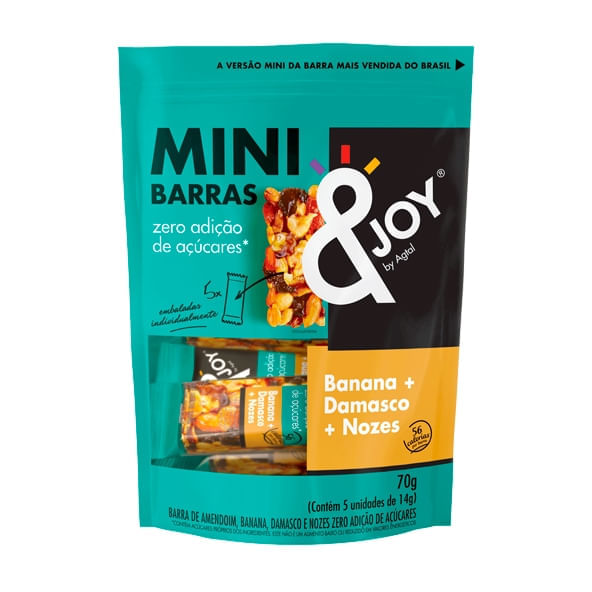 A Barra Mini Zero Açúcar Banana Damasco E Nozes, da &Joy, é mais uma opção prática para todos os horários que a fome bater. Dessa vez, com a excelente combinação de banana, damasco, nozes e castanhas inteiras. Além de tudo isso a barrinha não contém adição de açúcares e tem mais fibras para você!