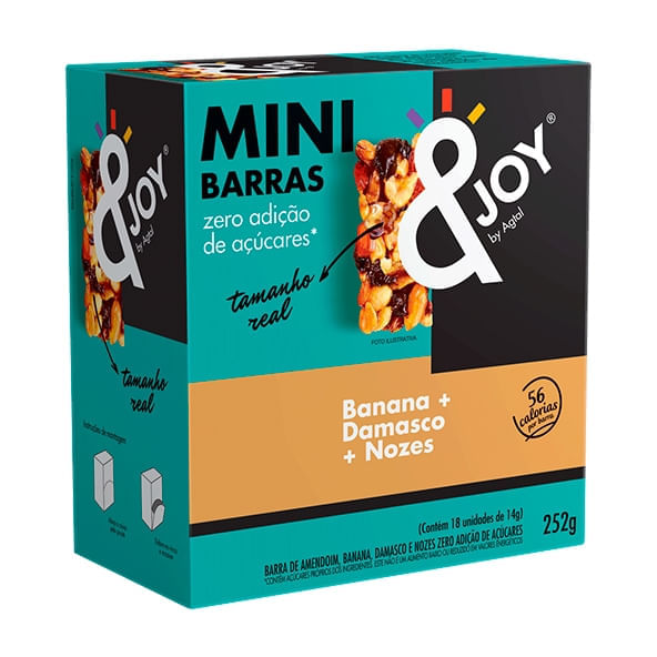A Barra Mini Zero Açúcar Banana Damasco E Nozes, da &Joy, é mais uma opção prática para todos os horários que a fome bater. Dessa vez, com a excelente combinação de banana, damasco, nozes e castanhas inteiras. Além de tudo isso a barrinha não contém adição de açúcares e tem mais fibras para você!