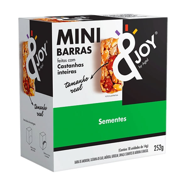 A Barra Mini Sementes, da &Joy, é prática e deliciosa. A junção de sementes e oleaginosas foi feita para garantir a sua saciedade e vem embalada para ser levada para qualquer lugar. E para melhorar: a barra é feita com castanhas inteiras para que você sinta o sabor de cada uma!