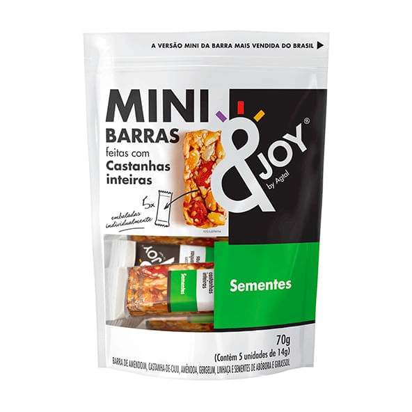 A Barra Mini Sementes, da &Joy, é prática e deliciosa. A junção de sementes e oleaginosas foi feita para garantir a sua saciedade e vem embalada para ser levada para qualquer lugar. E para melhorar: a barra é feita com castanhas inteiras para que você sinta o sabor de cada uma!