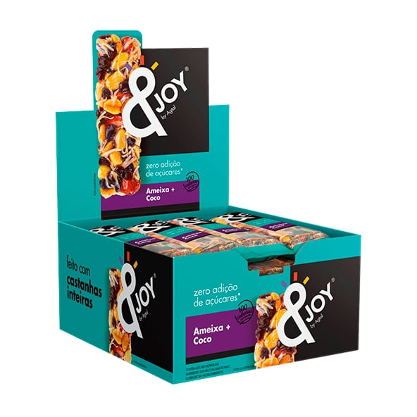 A Barra de Nuts Zero Açúcar de Ameixa e Coco, da &Joy, é uma opção saudável e gostosa para seus lanches. É feita com castanhas inteiras, tem baixo teor de carboidratos, é isenta de sódio e, ainda é fonte de fibras. Além disso, não tem conservantes, corantes ou aromatizantes.