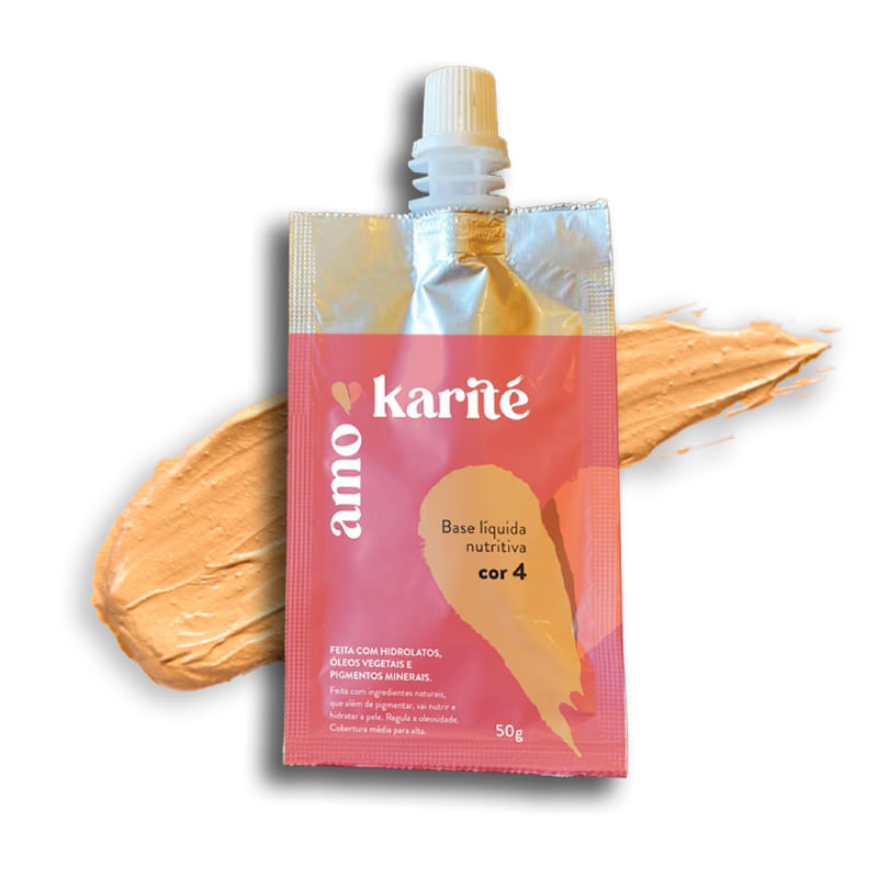 <p>A <strong>Base Líquida Nutritiva cor 4 da Amokarité</strong> é a escolha perfeita para quem busca uma maquiagem natural e eficaz. Feita com ingredientes 100% naturais e veganos, esta base não só uniformiza o tom da pele, neutralizando manchas e vermelhidões, como também hidrata, nutre e ajuda a regular a oleosidade ao longo do tempo.</p> <p>Com cobertura média e acabamento natural, é <strong>ideal para pele morena com subtom quente (amarelo)</strong>. Sua fórmula é hipoalergênica, livre de petrolatos, parabenos, sulfatos e metais pesados, cuidando tanto da sua pele quanto do meio ambiente, além disso, sua nova embalagem eco-friendly tem 92% menos plástico, conservando o produto por mais tempo.</p> <p><strong>Motivos para escolher o produto:</strong></p> <ul> <li>100% natural, vegana e cruelty-free</li> <li>Hipoalergênica e livre de substâncias nocivas</li> <li>Pigmenta, uniformiza o tom da pele e trata</li> <li>Ajuda a secar espinhas, reduzir manchas e linhas finas de expressão com o uso contínuo</li> <li>Embalagem sustentável com 92% menos plástico e maior durabilidade</li> <li>Durabilidade de até 6 horas</li> <li>Nutre e hidrata enquanto cobre imperfeições</li> </ul> <h2><strong>A Marca:</strong></h2> <p>A Amokarité nasceu com o propósito de oferecer maquiagens e cosméticos que respeitem tanto o corpo quanto o planeta, com produtos inovadores e totalmente livres de ingredientes de origem animal. A marca se tornou uma referência em cosméticos veganos e ecológicos, com transparência em seus insumos e embalagens que minimizam o impacto ambiental.</p>