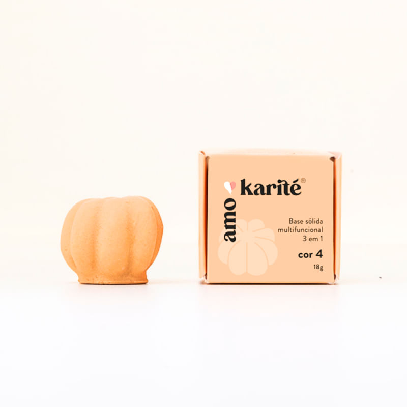 <p>A <strong>Base Sólida Multifuncional 3 em 1 Cor 4 da Amokarité</strong> possui formato de frutinha inconfundível e embalagem zero lixo, essa base vem sem embalagem tradicional, incentivando o reaproveitamento de potes que você já tenha em casa.</p> <p>A base da Amokarité uniformiza o tom da pele, neutralizando manchas e vermelhidões, ela também cobre imperfeições como espinhas e marcas de acne. Com uma textura prática e eficiente, ela oferece uma cobertura média e natural, enquanto <strong>nutre, hidrata e equilibra a oleosidade da pele,</strong> sendo ideal para quem busca uma maquiagem multifuncional e sustentável.</p> <h2><strong>Sugestão de uso: </strong></h2> <p>Pode ser usada como base, corretivo ou contorno. Aplique diretamente no rosto ou use um pincel para uma aplicação mais precisa.</p> <p>Para maior cobertura, amasse um pedaço da base com uma espátula e aplique na área desejada com pincel, esponja ou dedos. Para um acabamento mais sequinho e duradouro, recomendamos selar a maquiagem com o Pó Translúcido da Amokarité. </p> <p>A cor 4 é ideal para pele morena com subtom quente (amarelo). </p> <h2>Motivos para escolher o produto:</h2> <ul> <li>100% natural, vegana e cruelty-free</li> <li>Multifuncional: pode ser usada como base, corretivo ou contorno</li> <li>Zero lixo e <em>waterless</em>: sem embalagem convencional, promove o reaproveitamento e redução de resíduos</li> <li>Ajuda a cicatrizar espinhas, reduzir manchas e suavizar linhas finas com o uso contínuo</li> <li>Cobertura média e natural</li> <li>Hidrata e regula a oleosidade da pele</li> <li>Durabilidade de até 6 horas, com um acabamento que pode ser selado para maior fixação e aspecto sequinho</li> </ul> <h2><strong>A Marca:</strong></h2> <p>A Amokarité nasceu com o propósito de oferecer maquiagens e cosméticos que respeitem tanto o corpo quanto o planeta, com produtos inovadores e totalmente livres de ingredientes de origem animal. A marca se tornou uma referência em cosméticos veganos e ecológicos, com transparência em seus insumos e embalagens que minimizam o impacto ambiental.</p>