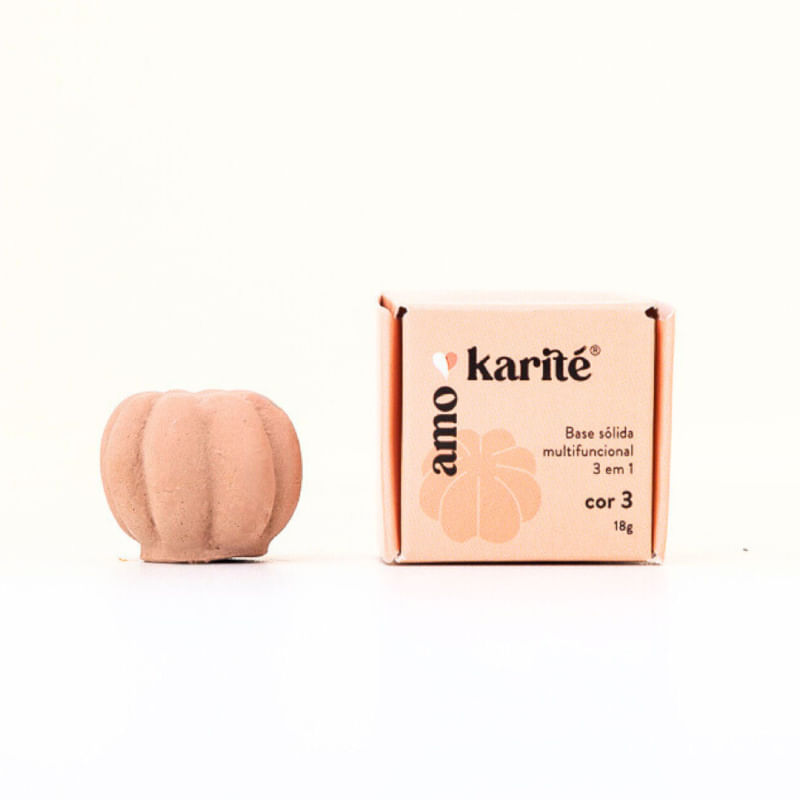 <p>A <strong>Base Sólida Multifuncional 3 em 1 Cor 3 da Amokarité</strong> possui formato de frutinha inconfundível e embalagem zero lixo, essa base vem sem embalagem tradicional, incentivando o reaproveitamento de potes que você já tenha em casa.</p> <p>A base da Amokarité uniformiza o tom da pele, neutralizando manchas e vermelhidões, ela também cobre imperfeições como espinhas e marcas de acne. Com uma textura prática e eficiente, ela oferece uma cobertura média e natural, enquanto <strong>nutre, hidrata e equilibra a oleosidade da pele,</strong> sendo ideal para quem busca uma maquiagem multifuncional e sustentável.</p> <h2><strong>Sugestão de uso: </strong></h2> <p>Pode ser usada como base, corretivo ou contorno. Aplique diretamente no rosto ou use um pincel para uma aplicação mais precisa.</p> <p>Para maior cobertura, amasse um pedaço da base com uma espátula e aplique na área desejada com pincel, esponja ou dedos. Para um acabamento mais sequinho e duradouro, recomendamos selar a maquiagem com o Pó Translúcido da Amokarité. </p> <p>A cor 3 é ideal para pele branca média com o subtom neutro.</p> <h2>Motivos para escolher o produto:</h2> <ul> <li>100% natural, vegana e cruelty-free</li> <li>Multifuncional: pode ser usada como base, corretivo ou contorno</li> <li>Zero lixo e <em>waterless</em>: sem embalagem convencional, promove o reaproveitamento e redução de resíduos</li> <li>Ajuda a cicatrizar espinhas, reduzir manchas e suavizar linhas finas com o uso contínuo</li> <li>Cobertura média e natural</li> <li>Hidrata e regula a oleosidade da pele</li> <li>Durabilidade de até 6 horas, com um acabamento que pode ser selado para maior fixação e aspecto sequinho</li> </ul> <h2><strong>A Marca:</strong></h2> <p>A Amokarité nasceu com o propósito de oferecer maquiagens e cosméticos que respeitem tanto o corpo quanto o planeta, com produtos inovadores e totalmente livres de ingredientes de origem animal. A marca se tornou uma referência em cosméticos veganos e ecológicos, com transparência em seus insumos e embalagens que minimizam o impacto ambiental.</p>
