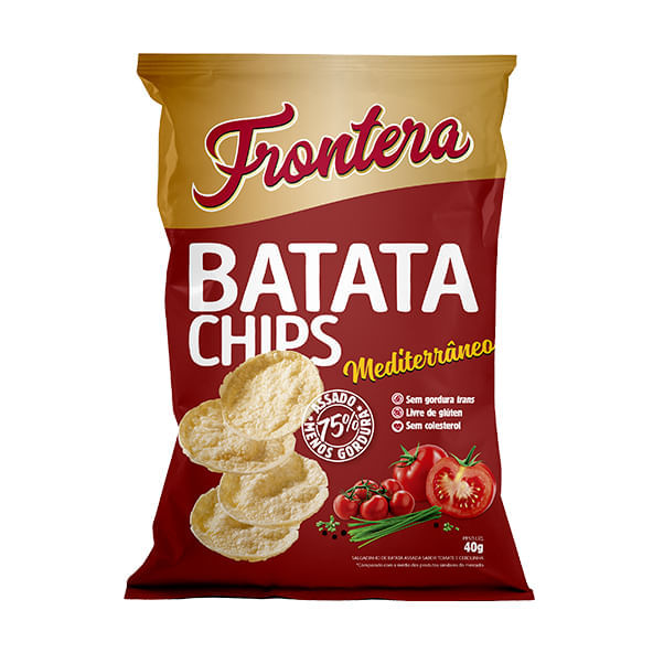 Informações técnicas do produto:<br> <br> A Batata chips sabor mediterrâneo (tomate e cebolinha), da Frontera, é uma opção prática, leve e crocante, feita com ingredientes de verdade.<br> <br> Snack assado, apresenta cerca de 75% menos gorduras, além de ser livre de glúten, colesterol e gordura trans.<br> <br> Sobre os ingredientes:<br> Batata: Rica em vitaminas do complexo B, vitamina C e vitamina K, também possui minerais como potássio, ferro, cálcio e fósforo. <br> Farinha de arroz: considerada um alimento energético, possui proteínas e é rica em vitaminas e sais minerais. É naturalmente livre de glúten e não é considerada alergênica.<br> Milho: fonte de fibra e carboidratos, é rico em vitaminas e minerais, e é uma boa fonte de proteína vegetal.<br> <br> Recomendação de consumo:<br> <br> É uma opção de salgadinho saudável, que pode ser consumido nos lanches intermediários entre uma refeição e outra.<br> <br> Por que escolher esse produto?<br> Assado<br> Sem gordura trans<br> Livre de glúten<br> Sem colesterol<br> Livre de transgênicos<br> Sem glutamato<br> Alergênicos:<br> <br> Contém soja e leite.<br> <br> Sobre a marca:<br> <br> A Frontera provém da vontade de levar mais sabor aos momentos do dia sem abrir mão de fazer boas escolhas, sempre prezando pela máxima qualidade. E o melhor, todos os produtos são preparados com ingredientes de verdade: grãos, trigo, milho e vegetais.