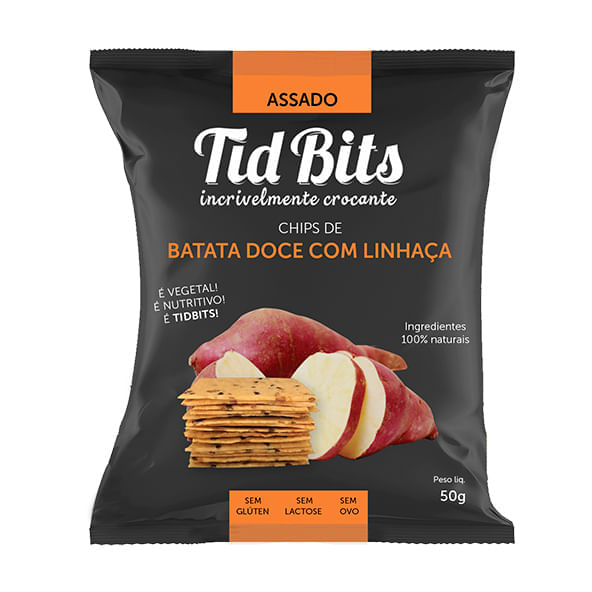 Informações técnicas do produto:<br>_x000D_ O Chips de Batata Doce com Linhaça, da Tid Bits, 50g, é um snack feito com vegetais frescos e nutritivos que fornecem fibras, vitaminas e minerais, para complementar sua alimentação. Assado lentamente no forno, é incrivelmente crocante, leve e saboroso.<br>_x000D_ <br>_x000D_ Recomendação de consumo:<br>_x000D_ Ideal para os lanches entre as refeições. Tenha sempre na bolsa para consumir quando bater aquela fome ou até após o treino.<br>_x000D_ <br>_x000D_ Por que escolher este produto?<br>_x000D_ 1,7g de fibras na porção<br>_x000D_ <br>_x000D_ Livre de ingredientes de origem vegetal<br>_x000D_ <br>_x000D_ Sem glúten<br>_x000D_ <br>_x000D_ Sem lactose<br>_x000D_ <br>_x000D_ Sem ovo<br>_x000D_ <br>_x000D_ Assado<br>_x000D_ <br>_x000D_ Livre de corantes ou conservantes artificiais<br>_x000D_ <br>_x000D_ Sobre a marca:<br>_x000D_ A Tid Bits da Sabor Saudável, é uma linha de produtos que transforma verduras e legumes em chips leves e crocantes. A Sabor Saúde é uma marca com mais de 30 anos de experiência, sua fábrica não contém alimentos com glúten para produção do Tid Bits.