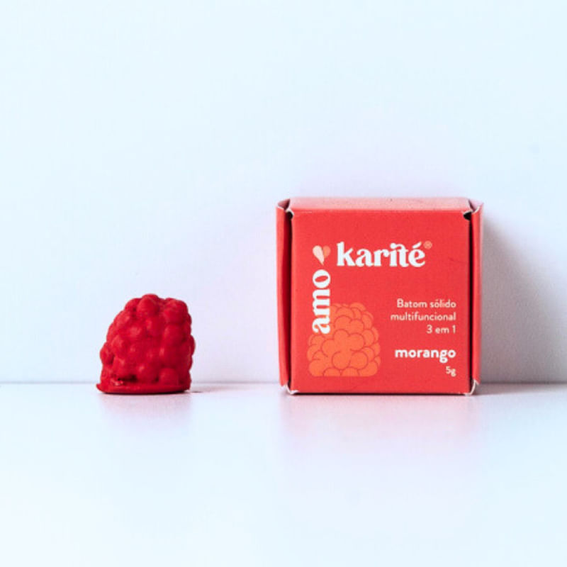 <p>O <strong>Batom Sólido Multifuncional 3 em 1 Morango da Amokarité</strong>, possui um formato de frutinha inconfundível com fórmula 100% natural, esse batom pode ser usado como <strong>blush, batom, sombra, delineador ou contorno</strong>.</p> <p>Ele combina pigmentação incrível com hidratação profunda, deixando sua pele nutrida e radiante. Com embalagem é biodegradável, reforça o compromisso da Amokarité com o meio ambiente ao evitar o uso de plástico e promover o conceito de reutilização.</p> <h2><strong>Sugestão de uso: </strong></h2> <p>Aplique diretamente nos lábios, bochechas ou pálpebras, espalhando com os dedos ou com um pincel para obter o efeito desejado.</p> <p>Para intensificar a pigmentação, amasse um pedaço do batom com uma espátula e aplique na região desejada.</p> <p>Você pode utilizá-lo em diversas áreas do rosto e corpo, criando looks variados e únicos.</p> <p>Para um acabamento mais sequinho e duradouro, selar com o Pó Translúcido Banana ou o Pó Mineral Cacau Glow. Se preferir um visual mais hidratante, combine com o Lip Balm da Amokarité.</p> <h2><strong>Motivos para escolher o produto:</strong></h2> <ul> <li>Multifuncionalidade: pode ser usado como batom, blush, sombra e delineador</li> <li>Sustentabilidade: a embalagem é biodegradável</li> <li>100% natural e vegano</li> <li>Livre de petrolatos, parabenos, sulfatos e metais pesados</li> <li>Clean Beauty e Skin Food: pigmenta e trata a pele</li> <li>Alta durabilidade</li> </ul> <h2><strong>A Marca:</strong></h2> <p>A Amokarité nasceu com o propósito de oferecer maquiagens e cosméticos que respeitem tanto o corpo quanto o planeta, com produtos inovadores e totalmente livres de ingredientes de origem animal. A marca se tornou uma referência em cosméticos veganos e ecológicos, com transparência em seus insumos e embalagens que minimizam o impacto ambiental.</p>