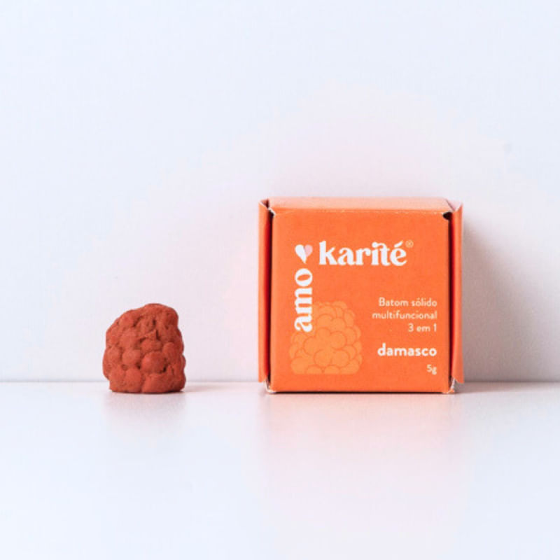 <p>O <strong>Batom Sólido Multifuncional 3 em 1 Damasco da Amokarité</strong>, possui um formato de frutinha inconfundível com fórmula 100% natural, esse batom pode ser usado como <strong>blush, batom, sombra, delineador ou contorno</strong>.</p> <p>Ele combina pigmentação incrível com hidratação profunda, deixando sua pele nutrida e radiante. Com embalagem é biodegradável, reforça o compromisso da Amokarité com o meio ambiente ao evitar o uso de plástico e promover o conceito de reutilização.</p> <h2><strong>Sugestão de uso: </strong></h2> <p>Aplique diretamente nos lábios, bochechas ou pálpebras, espalhando com os dedos ou com um pincel para obter o efeito desejado.</p> <p>Para intensificar a pigmentação, amasse um pedaço do batom com uma espátula e aplique na região desejada.</p> <p>Você pode utilizá-lo em diversas áreas do rosto e corpo, criando looks variados e únicos.</p> <p>Para um acabamento mais sequinho e duradouro, selar com o Pó Translúcido Banana ou o Pó Mineral Cacau Glow. Se preferir um visual mais hidratante, combine com o Lip Balm da Amokarité.</p> <h2><strong>Motivos para escolher o produto:</strong></h2> <ul> <li>Multifuncionalidade: pode ser usado como batom, blush, sombra e delineador</li> <li>Sustentabilidade: a embalagem é biodegradável</li> <li>100% natural e vegano</li> <li>Livre de petrolatos, parabenos, sulfatos e metais pesados</li> <li>Clean Beauty e Skin Food: pigmenta e trata a pele</li> <li>Alta durabilidade</li> </ul> <h2><strong>A Marca:</strong></h2> <p>A Amokarité nasceu com o propósito de oferecer maquiagens e cosméticos que respeitem tanto o corpo quanto o planeta, com produtos inovadores e totalmente livres de ingredientes de origem animal. A marca se tornou uma referência em cosméticos veganos e ecológicos, com transparência em seus insumos e embalagens que minimizam o impacto ambiental.</p>