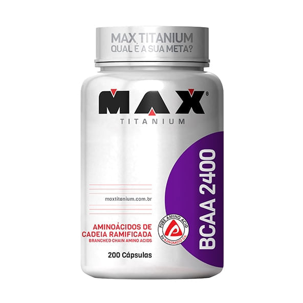 Informações técnicas do produto<br> O BCAA 2400 da Max Titanium, é um suplemento proteico feito aminoácidos essenciais, constituído por L-Leucina, L-Valina e L-Isoleucina. <br> <br> Informação sobre alergênicos<br> Pode conter derivados de leite, ovo e soja.<br> <br> Recomendação de consumo<br> Sugere-se a ingestão de 2 cápsulas antes do treino e 2 cápsulas depois do treino ou conforme recomendação de nutricionista ou médico.<br> <br> Por que escolher esse produto?<br> Oferece 2360mg de aminoácidos essenciais por porção (4 cápsulas);<br> Praticidade de consumo por ser cápsulas;<br> Sem glúten;<br> Sem açúcar;<br> Sem lactose;<br> Aminoácidos essenciais: podem auxiliar na síntese proteica.
