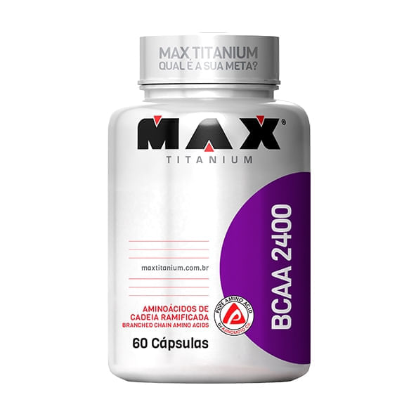 Informações técnicas do produto<br> O BCAA 2400 da Max Titanium, é um suplemento proteico feito aminoácidos essenciais, constituído por L-Leucina, L-Valina e L-Isoleucina. <br> <br> Informação sobre alergênicos<br> Pode conter derivados de leite, ovo e soja.<br> <br> Recomendação de consumo<br> Sugere-se a ingestão de 2 cápsulas antes do treino e 2 cápsulas depois do treino ou conforme recomendação de nutricionista ou médico.<br> <br> Por que escolher esse produto?<br> Oferece 2360mg de aminoácidos essenciais por porção (4 cápsulas);<br> Praticidade de consumo por ser cápsulas;<br> Sem glúten;<br> Sem açúcar;<br> Sem lactose;<br> Aminoácidos essenciais: podem auxiliar na síntese proteica.