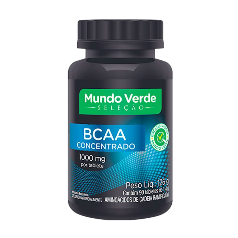 <p>O <strong>BCAA Concentrado Mundo Verde Seleção 1000mg com 90 Tabletes</strong> é um suplemento feito à base de aminoácidos ramificados: leucina, isoleucina e valina. Esses aminoácidos são essências, ou seja, não são produzidos pelo organismo e devem ser ingeridos em alimentos ou suplementos. Tem 90 tabletes de 1000mg cada.</p> Recomendações para consumo: <p>Consumir dois tabletes ao dia ou conforme orientação de nutricionista ou médico.</p> Sugestão de consumo: <ul> <li> <p>Apresentação em tabletes</p> </li> <li> <p>1000mg de bcaa por tablete</p> </li> <li> <p>Não contém Glúten</p> </li> <li> <p>Rendimento: 45 porções</p> </li> </ul> Sobre a marca: <p>A <strong>Mundo Verde Seleção</strong> é uma linha de produtos para quem quer ter uma vida mais saudável e gostosa. A marca quer ajudar a colocar essas escolhas em prática. A paixão e conhecimento pelos alimentos, nutrientes, aromas e sabores permitem a seleção das melhores opções saudáveis para qualquer ocasião. Conheça a linha completa <strong>Mundo Verde Seleção</strong>, com inúmeros produtos saudáveis e gostosos para facilitar seu dia a dia.</p>
