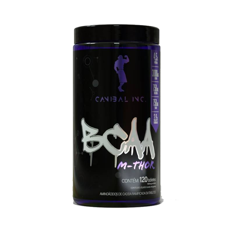 <p>A <strong>BCAA M-Thor da Canibal Inc</strong> é um suplemento alimentar em tabletes elaborado com a combinação dos aminoácidos leucina, isoleucina e valina com a vitamina B6. A fórmula é livre de glúten e a embalagem conta com 120 tabletes, que rendem cerca de 40 doses.</p>_x000D_ <h2><strong>Sobre os ingredientes:</strong></h2>_x000D_ <p>BCAA: são aminoácidos essenciais de cadeia ramificada que contribuem com a manutenção e recuperação da musculatura e tecidos, reduzindo a fadiga durante a prática de atividades físicas intensas e melhorando a sensação de dor muscular pós treino.</p>_x000D_ <h2><strong>Sugestão de consumo:</strong></h2>_x000D_ <p>Consumir 3 tabletes ao dia ou conforme orientação do médico ou nutricionista.</p>_x000D_ <h2><strong>Motivos para escolher o produto:</strong></h2>_x000D_ <ul>_x000D_ <li>_x000D_ <p>3000mg de leucina;</p>_x000D_ </li>_x000D_ <li>_x000D_ <p>750mg de isoleucina;</p>_x000D_ </li>_x000D_ <li>_x000D_ <p>750mg de valina;</p>_x000D_ </li>_x000D_ <li>_x000D_ <p>3,9mg de vitamina B6;</p>_x000D_ </li>_x000D_ <li>_x000D_ <p>Rende cerca de 40 doses;</p>_x000D_ </li>_x000D_ <li>_x000D_ <p>Sem glúten e sem lactose.</p>_x000D_ </li>_x000D_ </ul>_x000D_ <h2><strong>A Marca:</strong></h2>_x000D_ <p>A Canibal Inc foi fundada no ano de 2017 com a missão de revolucionar o mercado de suplementos alimentares, a empresa trabalha com produtos focados em bem-estar, emagrecimento, ganho de força e aumento de massa muscular. Cada produto é desenvolvido com base em pesquisas e uso de matéria prima premium, trazendo ciência aliada a alta performance.</p>_x000D_ <p> </p>