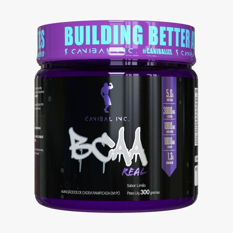 <p>A <strong>BCAA Real da Canibal Inc</strong> é um suplemento alimentar em pó, com sabor refrescante de limão. A composição foi desenvolvida a partir da combinação dos aminoácidos leucina, isoleucina e valina com a vitamina B6 e o Waxy Maize.</p>_x000D_ <h2><strong>Sobre os ingredientes:</strong></h2>_x000D_ <p>BCAA: são aminoácidos essenciais de cadeia ramificada que contribuem com a manutenção e recuperação da musculatura e tecidos, reduzindo a fadiga durante a prática de atividades físicas intensas e melhorando a sensação de dor muscular pós treino.</p>_x000D_ <h2><strong>Sugestão de consumo:</strong></h2>_x000D_ <p>Consumir 5,6g (1 dosador) diluído em 200ml de água, ou conforme orientação do médico ou nutricionista.</p>_x000D_ <h2><strong>Motivos para escolher o produto:</strong></h2>_x000D_ <ul>_x000D_ <li>_x000D_ <p>3000mg de leucina;</p>_x000D_ </li>_x000D_ <li>_x000D_ <p>1000mg de isoleucina;</p>_x000D_ </li>_x000D_ <li>_x000D_ <p>1000mg de valina;</p>_x000D_ </li>_x000D_ <li>_x000D_ <p>1,3mg de vitamina B6;</p>_x000D_ </li>_x000D_ <li>_x000D_ <p>Baixo em calorias;</p>_x000D_ </li>_x000D_ <li>_x000D_ <p>Sabor limão; </p>_x000D_ </li>_x000D_ <li>_x000D_ <p>Zero adição de açúcares;</p>_x000D_ </li>_x000D_ <li>_x000D_ <p>Rende cerca de 53 doses;</p>_x000D_ </li>_x000D_ <li>_x000D_ <p>Sem glúten e sem lactose.</p>_x000D_ </li>_x000D_ </ul>_x000D_ <h2><strong>A Marca:</strong></h2>_x000D_ <p>A Canibal Inc foi fundada no ano de 2017 com a missão de revolucionar o mercado de suplementos alimentares, a empresa trabalha com produtos focados em bem-estar, emagrecimento, ganho de força e aumento de massa muscular. Cada produto é desenvolvido com base em pesquisas e uso de matéria prima premium, trazendo ciência aliada a alta performance.</p>_x000D_ <p> </p>