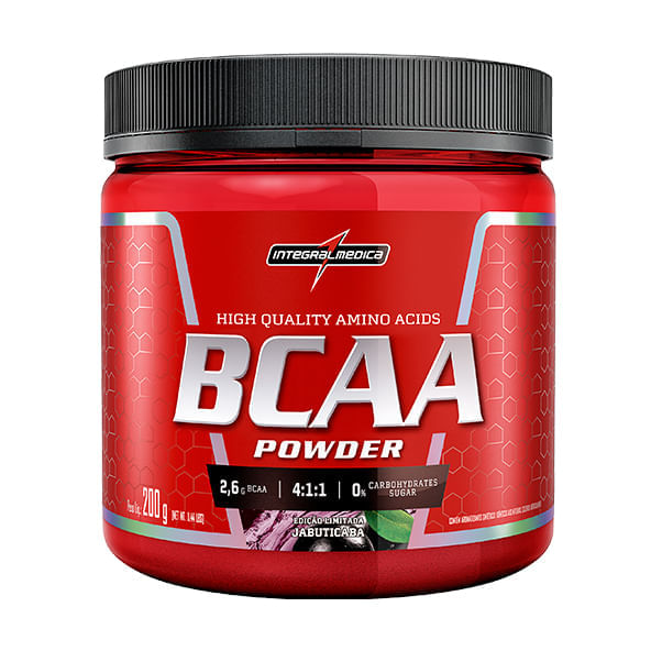 O BCAA, sabor jabuticaba, da Integralmedica é um produto à base de aminoácidos, com zero carboidrato, sem açúcar e sem glúten. Fornece 2,6g de BCAA, na proporção 4:1:1, possui baixo teor calórico, e não apresenta quantidade significativa de sódio.