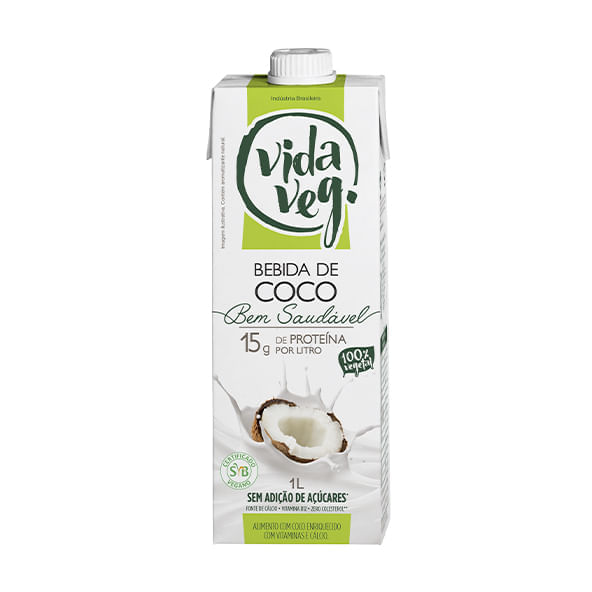 A Bebida de coco, da Vida Veg, 1L, é um delicioso leite vegetal enriquecido com vitaminas, pronto para consumo, prático e nutritivo! Cada porção oferece 3g de proteína e 33% do valor diário de cálcio.<br> <br> O produto possui o selo de certificação da Sociedade Vegetariana Brasileira (SVB) de produto vegano.<br> <br> Motivos para escolher esse produto?<br> Sem glúten<br> Sem lactose<br> Vegano<br> Pronto para uso<br> Sem adição de açúcares<br> Zero soja e lácteos transgênicos<br> Certificado SVB (garantia de produto vegano)<br> Informações sobre a marca:<br> A Vida Veg surgiu em 2015 com o objetivo de ampliar as opções de produtos para o público de vegetarianos e veganos, fabricando produtos 100% vegetais, saborosos e saudáveis, proporcionando uma alimentação mais rica em nutrientes. A produção é feita de forma artesanal e a empresa possui o certificado de produtos veganos da Sociedade Vegetariana Brasileira.