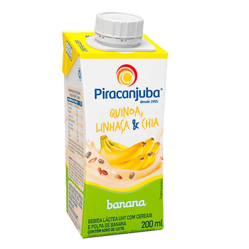 <p>Informações técnicas do produto:<br><br>A Bebida láctea de banana, da Piracanjuba, é uma bebida que conta não apenas com o leite em sua fórmula, mas também cereais e frutas, deixando seu sabor ainda mais característico e especial.<br><br>Opção fonte de fibras e zero gordura trans.<br><br>Informações sobre Alergênicos:<br><br>Contém leite e derivados. Pode conter castanha de cajú, castanha do brasil, cevada, trigo, soja, aveia e macadâmia.<br><br>Recomendações de consumo:<br><br>Ideal para lanches intermediários.<br><br>Por que comprar este produto?<br><br>● Sem a presença de ingredientes geneticamente modificados<br><br>● Zero gordura trans<br><br>● Não contém corantes artificiais<br><br>● Livre de pesticidas<br><br>● Embalagem com sistema abre e fecha<br><br>Sobre a marca:<br><br>A Piracanjuba é uma marca que nasceu em 1955 e que atualmente é reconhecida não apenas em território nacional, mas internacional também, tudo isso por oferecer produtos de qualidade que prezam pela saúde e bem-estar do consumidor. Seus processos são todos feitos com segurança, ética e responsabilidade ambiental.</p>