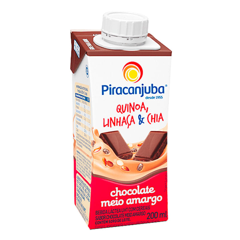 <p>Informações técnicas do produto:<br><br>A Bebida láctea de chocolate meio amargo, da Piracanjuba, é uma bebida que conta não apenas com o leite e cacau em sua fórmula, mas também cereais, deixando o sabor ainda mais característico e especial.<br><br>Opção fonte de fibras e zero gordura trans.<br><br>Informações sobre Alergênicos:<br><br>Contém leite e derivados. Pode conter castanha de cajú, castanha do brasil, cevada, trigo, soja, aveia e macadâmia.<br><br>Recomendações de consumo:<br><br>Ideal para lanches intermediários<br><br>Por que comprar este produto?<br><br>● Sem a presença de ingredientes geneticamente modificados<br><br>● Zero gordura trans<br><br>● Não contém corantes artificiais<br><br>● Livre de pesticidas<br><br>● Embalagem com sistema abre e fecha<br><br>Sobre a marca:<br><br>A Piracanjuba é uma marca que nasceu em 1955 e que atualmente é reconhecida não apenas em território nacional, mas internacional também, tudo isso por oferecer produtos de qualidade que prezam pela saúde e bem-estar do consumidor. Seus processos são todos feitos com segurança, ética e responsabilidade ambiental.</p>
