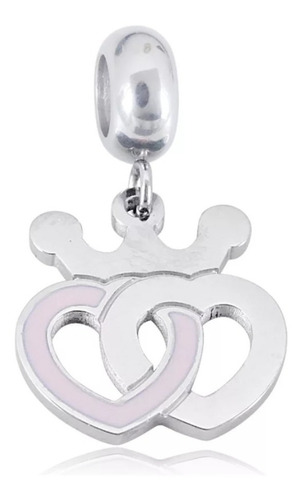 Berloque pingente Coração Duplo Coroa Aço inox<br /> <br /> Altura 14mm<br /> <br /> Largura 14mm<br /> <br /> Furo 5mm<br /> <br /> *** Peças em aço inox:<br /> <br /> Você pode entrar no mar, na piscina, no banho com suas joias sem se preocupar, o aço inox é um metal resistente, não escurece e nem enferruja em contato com a água salgada;<br /> Não fica preta e nem descasca porque não oxida, para dar brilho basta passar uma flanela mágica que está resolvido;<br /> Se você é alérgico o mais recomendado é usar o aço inox para não causar alergias. Lembrando que pode haver pessoas com alergia a esse aço, não está descartada a possibilidade.