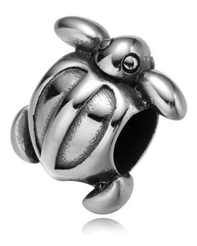 Berloque Tartaruga<br /> Material: aço inoxidável<br /> <br /> Furo interno: 6mm<br /> <br /> <br /> <br /> *** Peças em aço inox:<br /> <br /> Você pode entrar no mar, na piscina, no banho com suas joias sem se preocupar, o aço inox é um metal resistente, não escurece e nem enferruja em contato com a água salgada;<br /> Não fica preta e nem descasca porque não oxida, para dar brilho basta passar uma flanela mágica que está resolvido;<br /> Se você é alérgico o mais recomendado é usar o aço inox para não causar alergias. Lembrando que pode haver pessoas com alergia a esse aço, não está descartada a possibilidade.