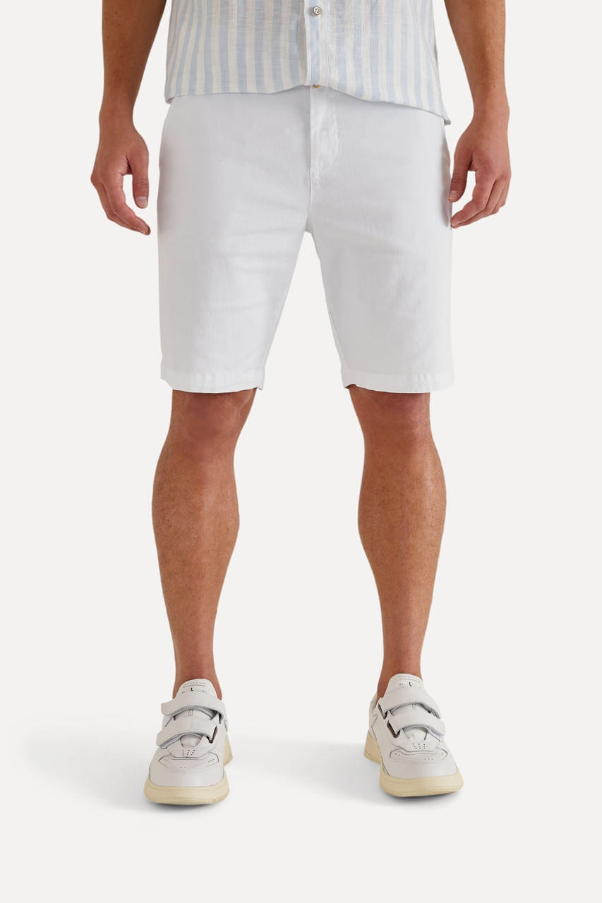 Bermuda casual feita em tecido de algodão com elastano tinturado em ampla cartela de cores. Com detalhe de cadarço nos bolsos faca dianteiros e nos bolsos embutidos traseiros. Leva bolso extra porta celular na frente. Leva assinatura do picapau bordado. Modelagem contemporânea levemente ajustada ao corpo.