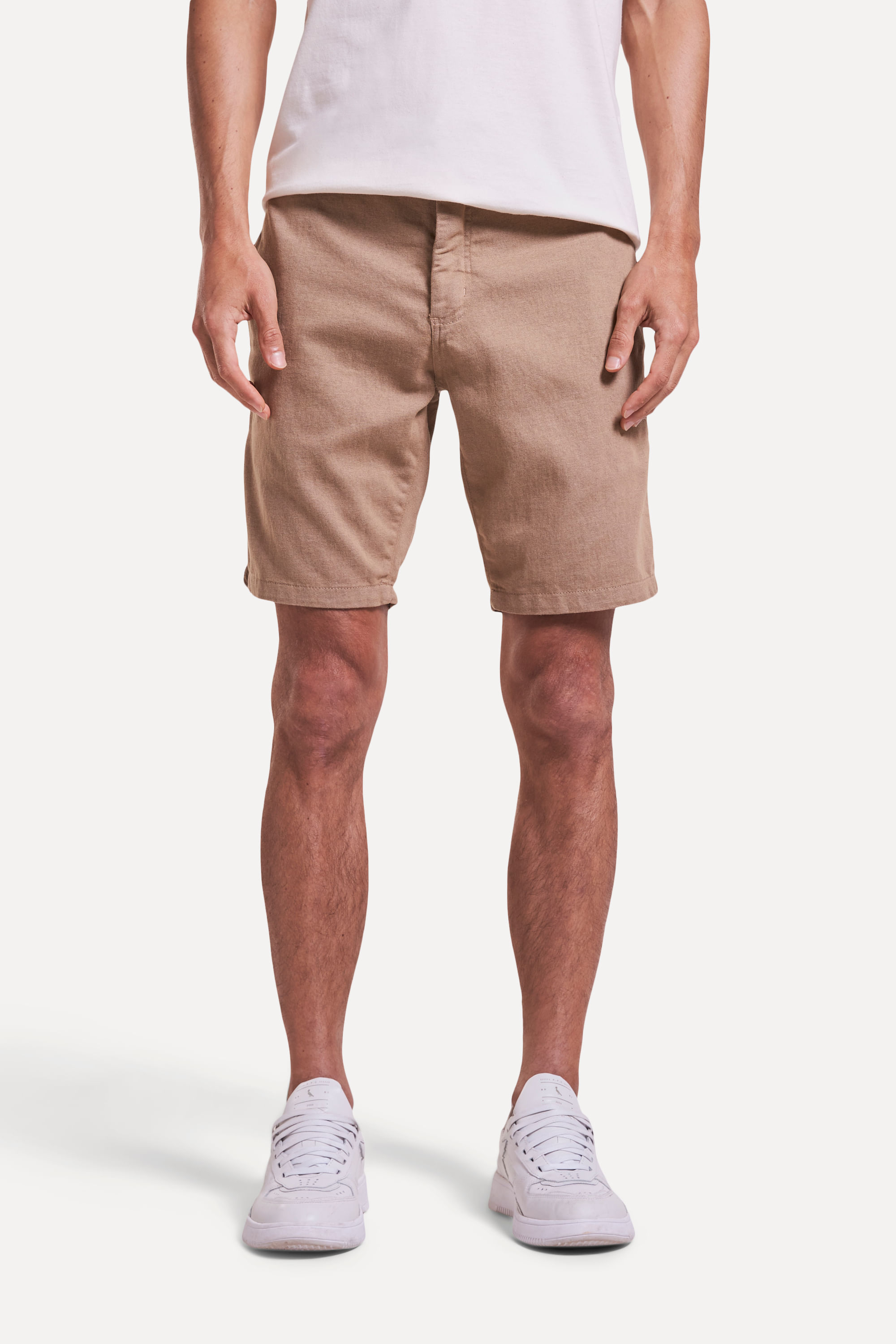 Bermuda casual feita em tecido mixto fazendo uma leve textura. Traz todo o conforto do stretch na composição. Tinturado em ampla cartela de cores. Os bolsos dianteiros são retos remetendo a alfaiataria e os bolsos traseiros embutidos. Leva assinatura do picapau bordado e etiqueta bandeira na frente. Modelagem contemporânea levemente ajustada ao corpo.