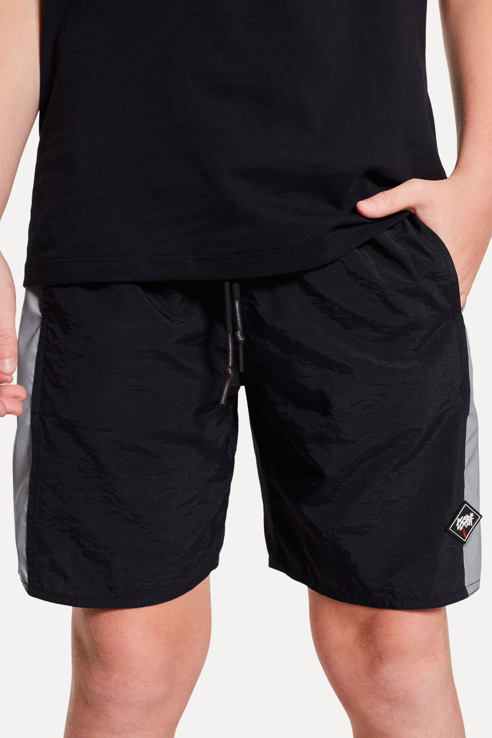 Bermuda infantil da Coleção de Verão 25 da Reserva Mini. Confeccionada em tecido tecnológico, possui recortes nas duas laterais com tecido refletivo. Possui elástico e cadarço no cós e assinatura com nova etiqueta emborrachada. Produzido eticamente no Brasil. Comprando esta peça, você complementa cinco pratos de comida através do nosso programa 1P=5P.