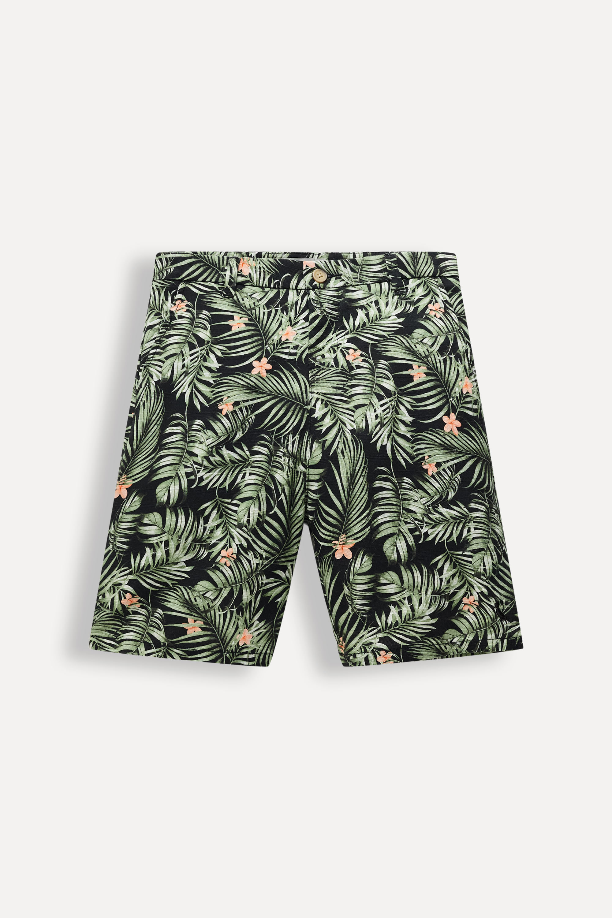 O Mini livre pra brincar vestindo a Bermuda Mini Estampa Folhas! Feita em algodão de alta qualidade, garante muito conforto. Possui passador para cintos e bolsos. Combine com camisetas, camisas ou regatas, tênis ou chinelos. Comprando esta peça, você viabiliza cinco pratos de comida através do nosso Programa 1P5P. Bermuda produzida eticamente no Brasil.