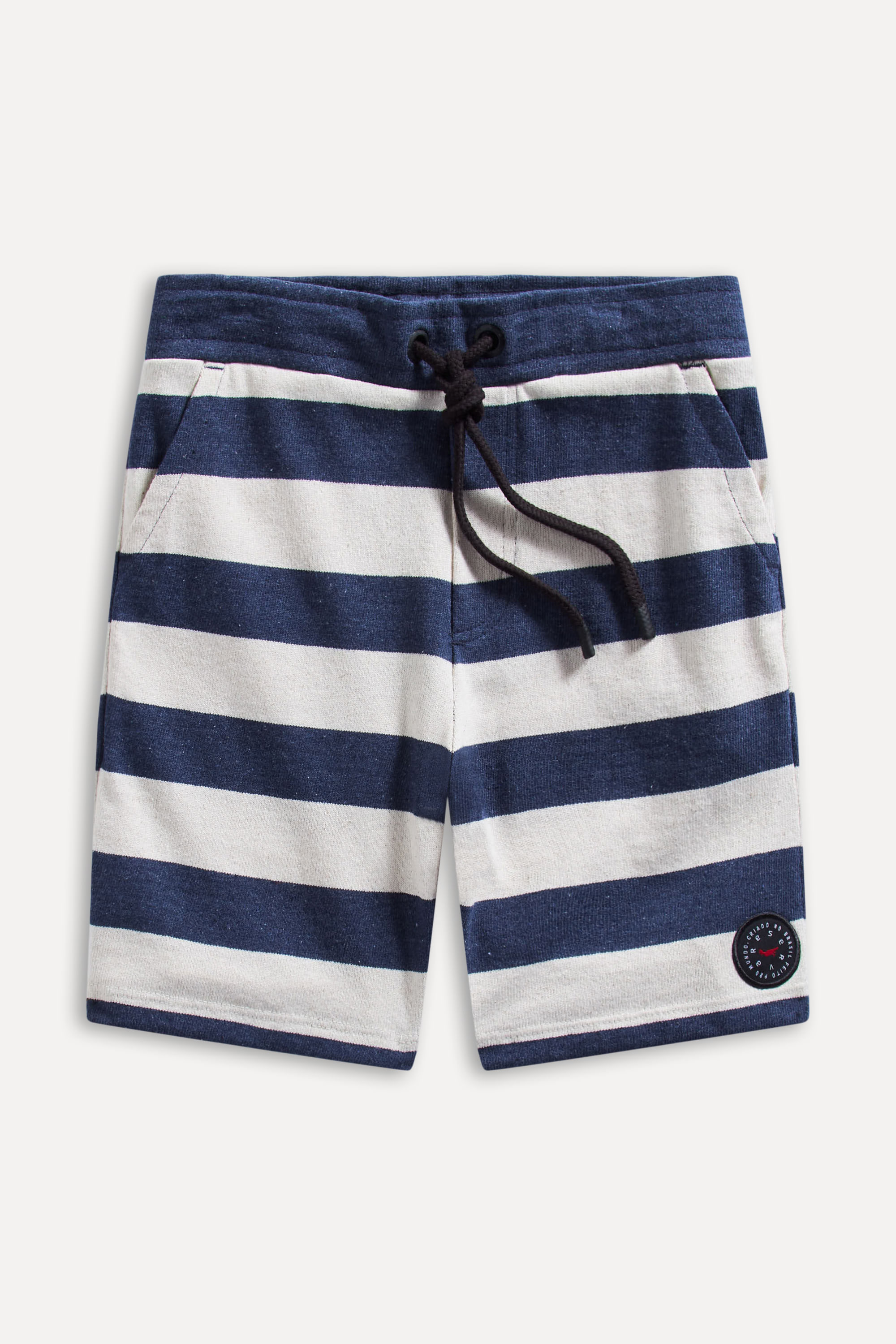 Bermuda da linha infantil Reserva Mini. Em moletom com listras largas, o modelo tem cadarço para ajuste no cós e bolsos faca na frente e atrás. Dupla perfeita de camiseta para o dia a dia confortável da criançada! Produzido eticamente no Brasil. Comprando esta peça, você complementa cinco pratos de comida através do nosso programa 1P=5P.