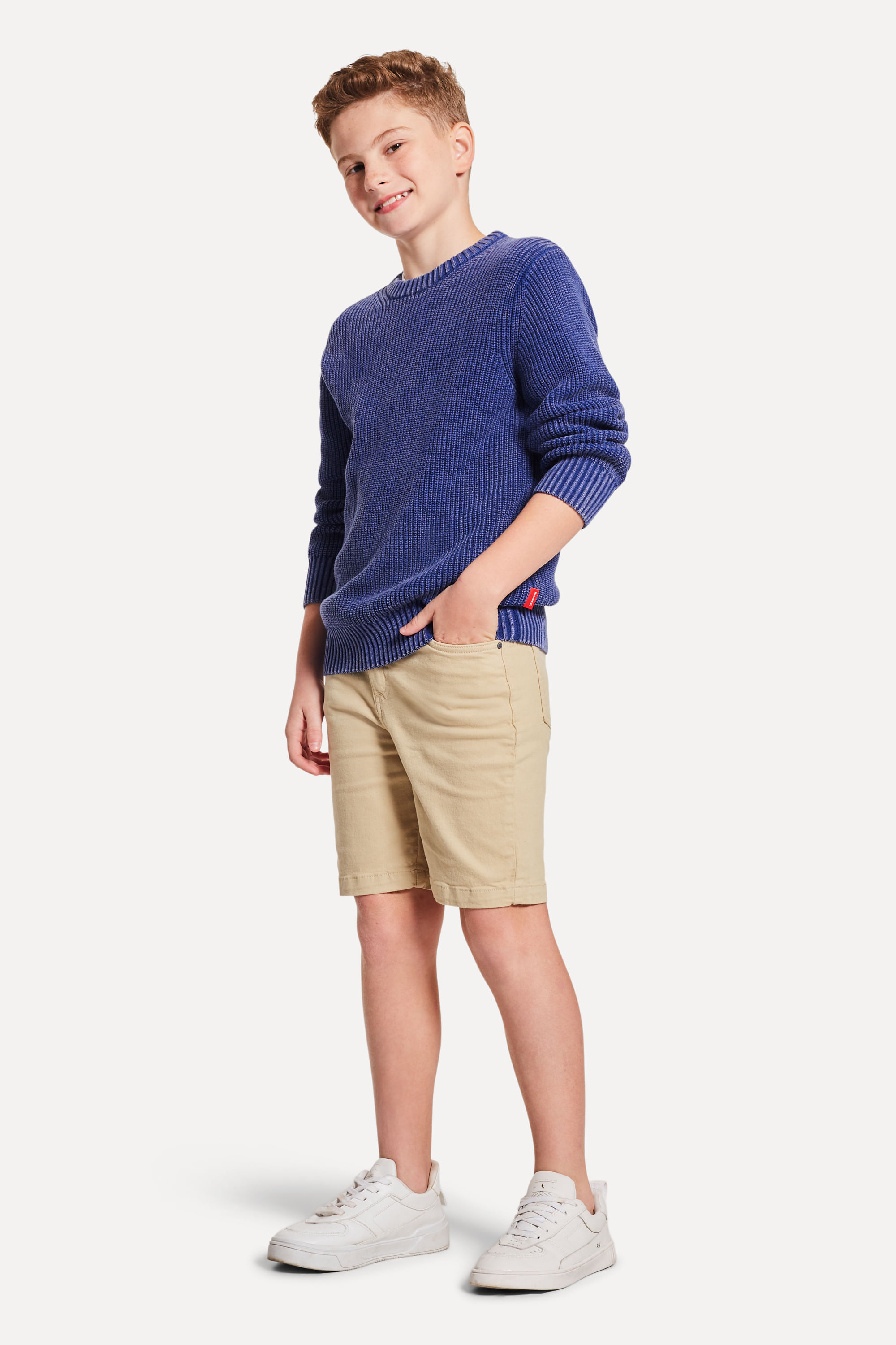O Mini livre pra explorar o mundão usando a Bermuda Mini Sarja 5 Pockets Comfort! Feita em algodão de alta qualidade, proporciona muito conforto. Possui cós com elástico regulável e bolsos. Combine com camisetas, camisas ou regatas, tênis ou chinelos. Comprando esta peça, você viabiliza cinco pratos de comida através do nosso Programa 1P5P. Bermuda produzida eticamente no Brasil.