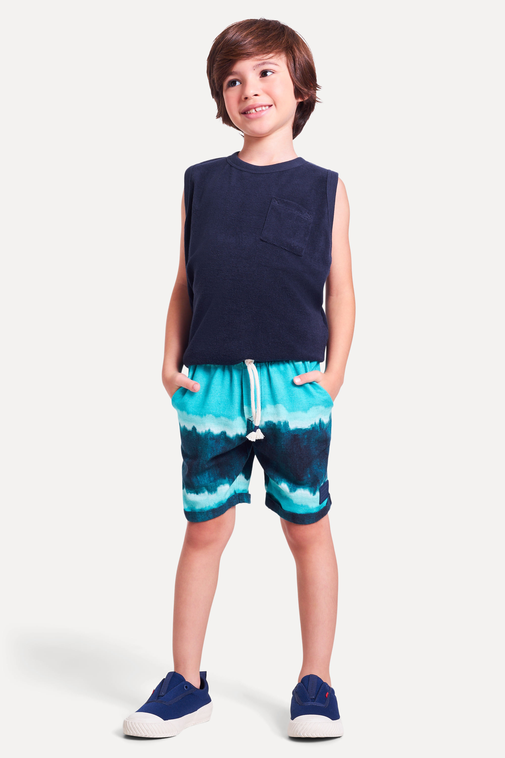 Bermuda da linha infantil Reserva Mini. O modelo em algodão misto tem cós de elástico, dois bolsos na frente e bolsos 5 pockets nas costas. Possui ainda ilhóses e cadarço com detalhe de linha contrastante na ponta. A estampa Tie-dye é perfeita para incrementar partes de cima básicas! Produzido eticamente no Brasil. Comprando esta peça, você complementa cinco pratos de comida através do nosso programa 1P=5P.