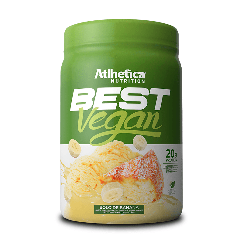 <p>O <strong>Best Vegan Bolo de Banana Atlhetica </strong>, é composto por um Blend de proteínas vegetais, ideal para <strong>veganos</strong> e intolerantes à lactose.</p> <p>Oferece em cada porção, <strong>20g de proteínas</strong>, fibras e 100% da recomendação diária de Vitamina B12, em sua forma ativa, Metilcobalamina.</p> <p>Sua embalagem é sustentável produzida a partir de polietileno verde I’M GREENTM (bioplástico desenvolvido a partir da cana de açúcar).</p> Sugestão de consumo: <p>Adicione 1 sachê (35 gramas) em 250 ml de água mineral ou a bebida da sua preferência e misture. Tome uma vez ao dia ou conforme orientação de médico ou nutricionista</p> Motivos para escolher o produto: <ul> <li>20g de proteína por porção</li> <li>Sem adição de açúcar</li> <li>Não contém glúten</li> <li>Sem lactose</li> <li>Livre de organismos geneticamente modificados (GMO Free)</li> <li>Proteína vegetal</li> <li>Preparo fácil</li> </ul> Sobre a marca: <p>A <strong>Atlhetica</strong>, é uma empresa no qual os produtos são desenvolvidos pela ADS Laboratório Nutricional, que produz suplementos alimentares inovadores com alta qualidade e tecnologia avançada, é considerada a maior indústria de suplementos alimentares do Brasil. Os produtos são fabricados seguindo as normas estabelecidas pela ANVISA e pelas Boas Práticas de Fabricação, proporcionando a qualidade, bem-estar e eficácia.</p>